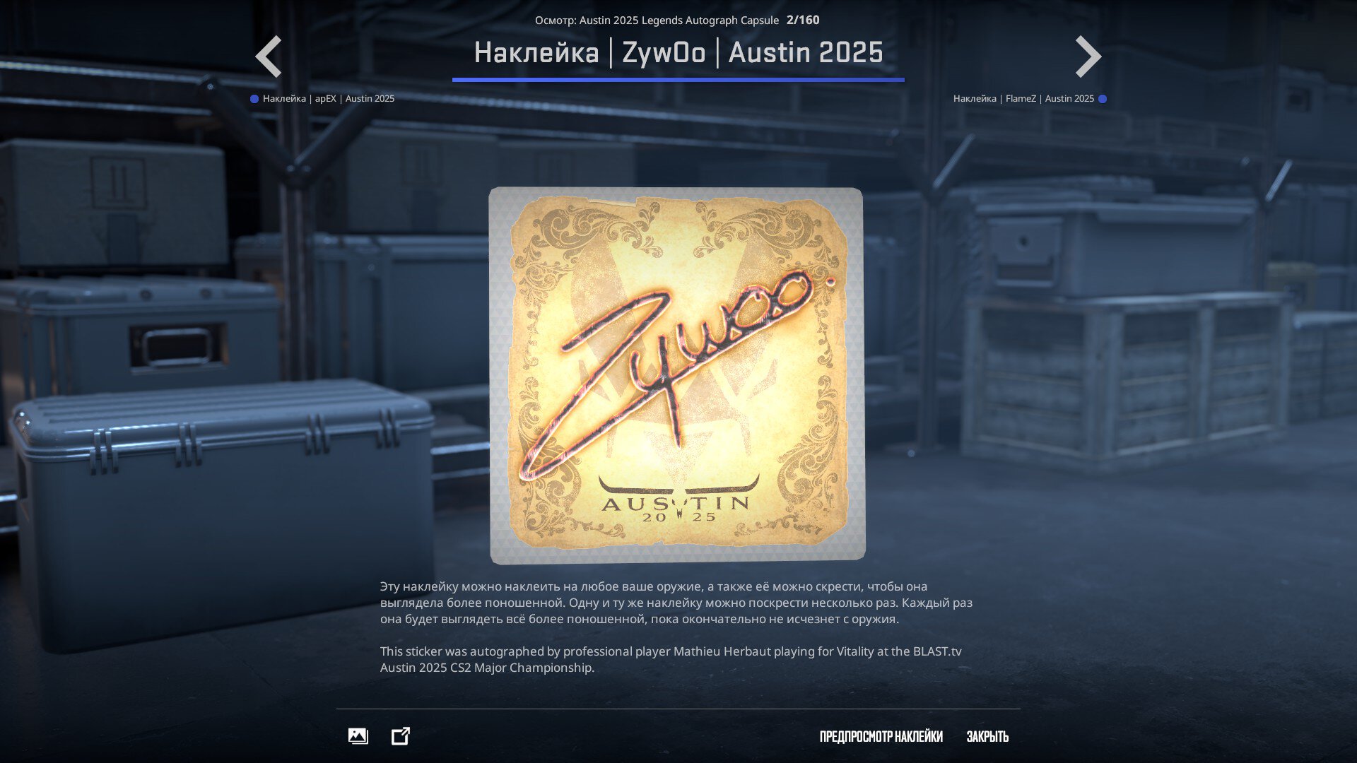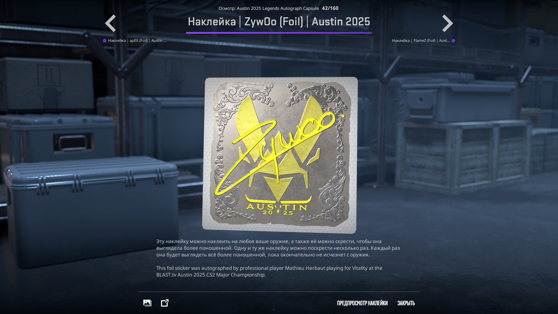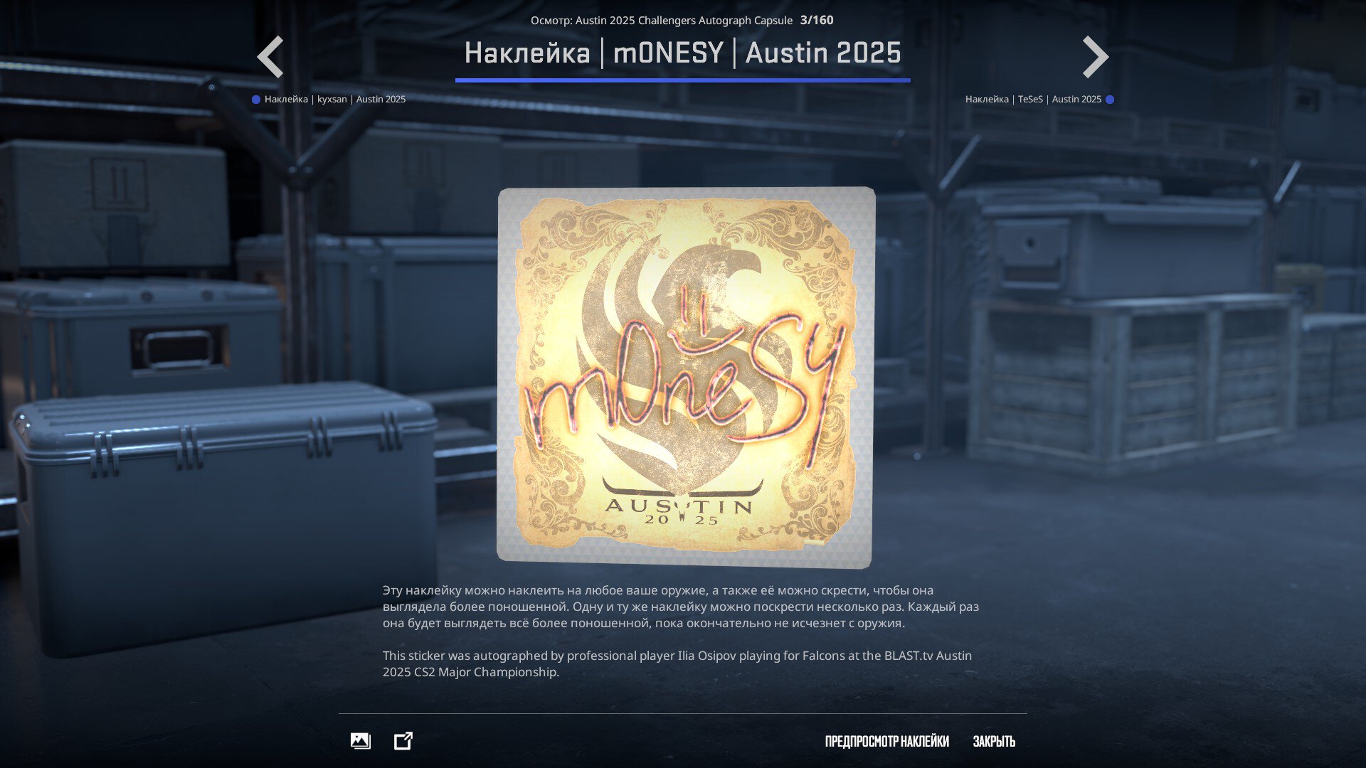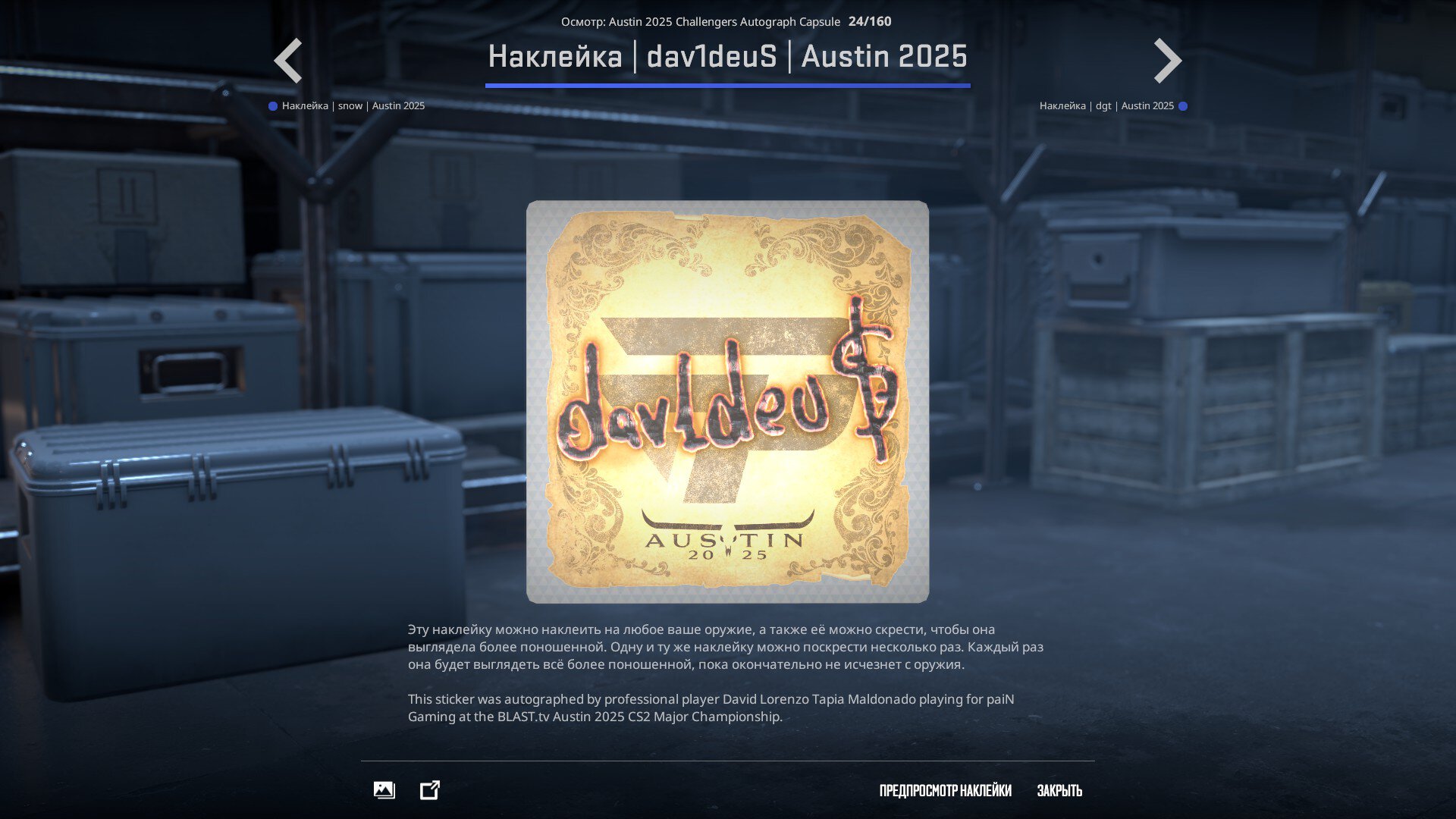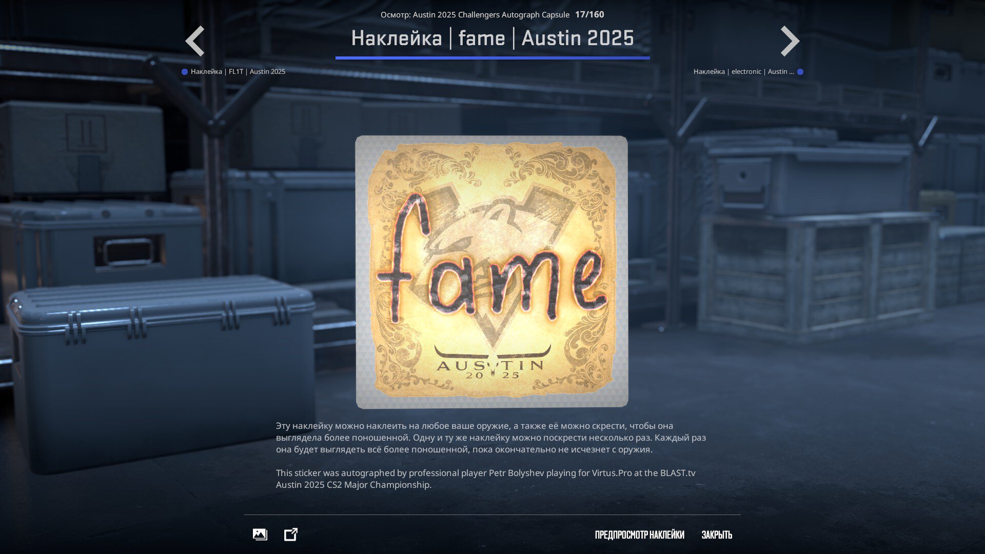В CS 2 добавили предметы к BLAST Austin Major 2025, в том числе – автографы игроков. Они доступны в 4 качествах.