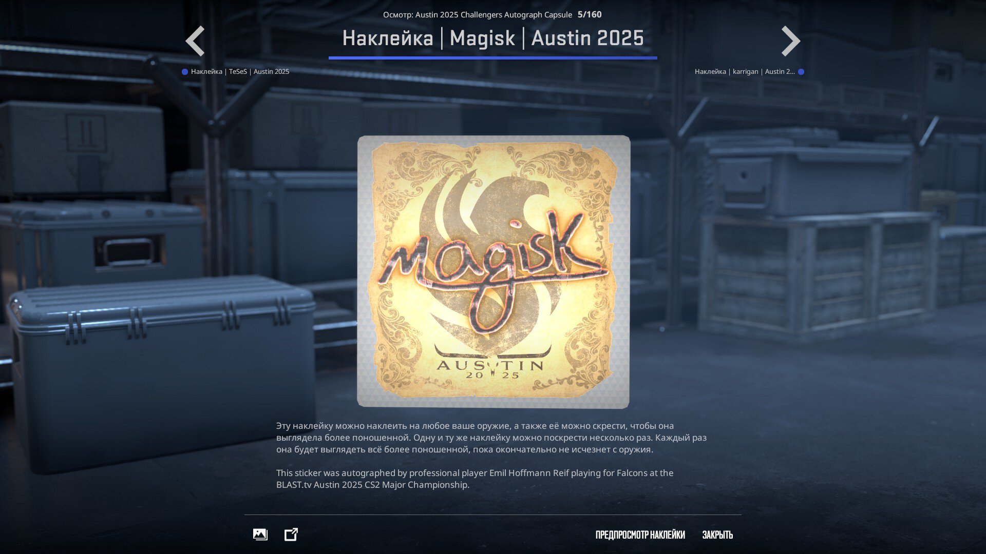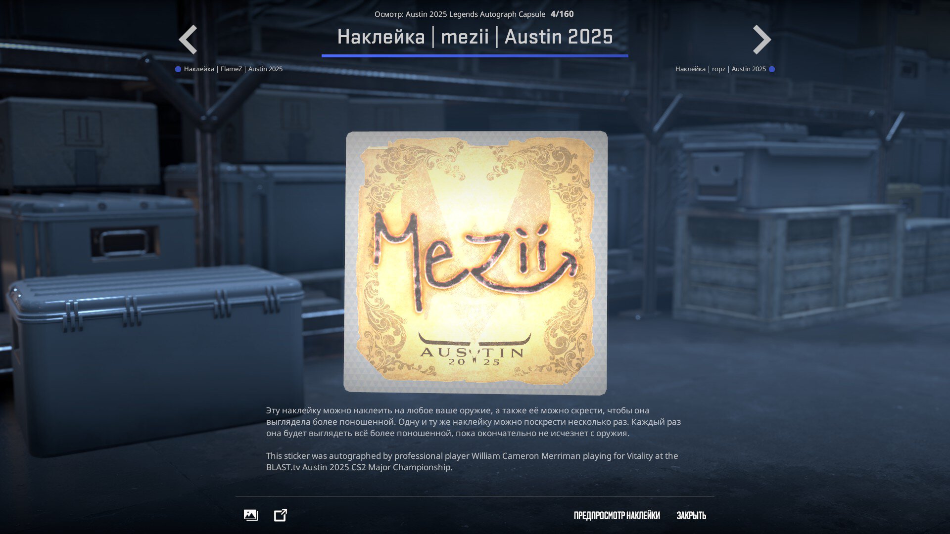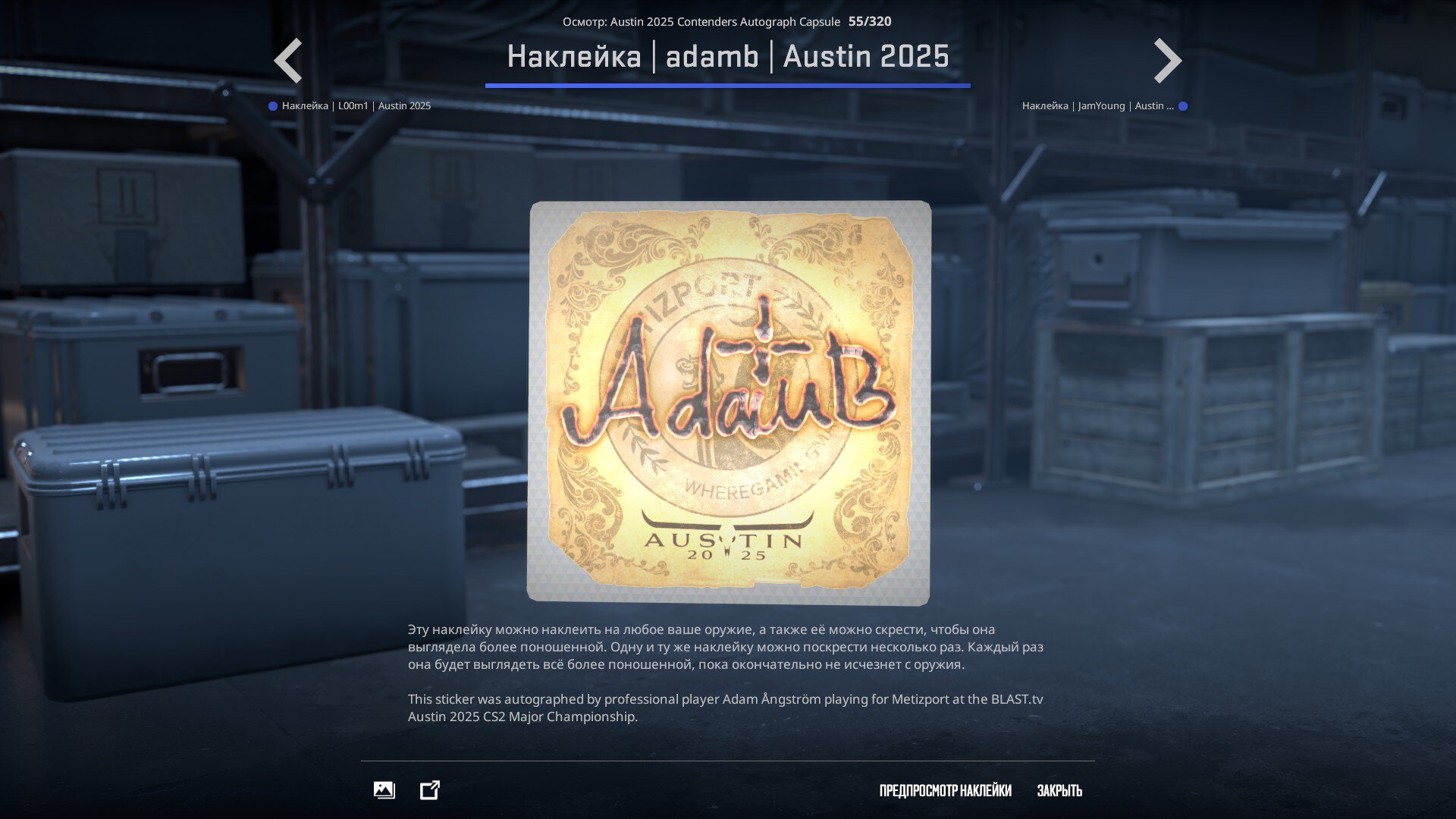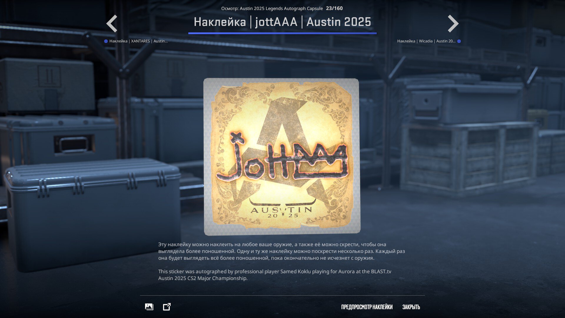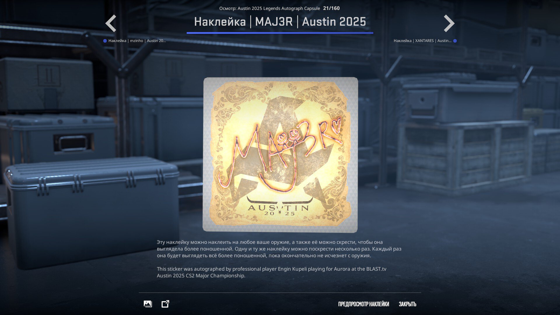 В CS 2 добавили предметы к BLAST Austin Major 2025, в том числе – автографы игроков. Они доступны в 4 качествах.