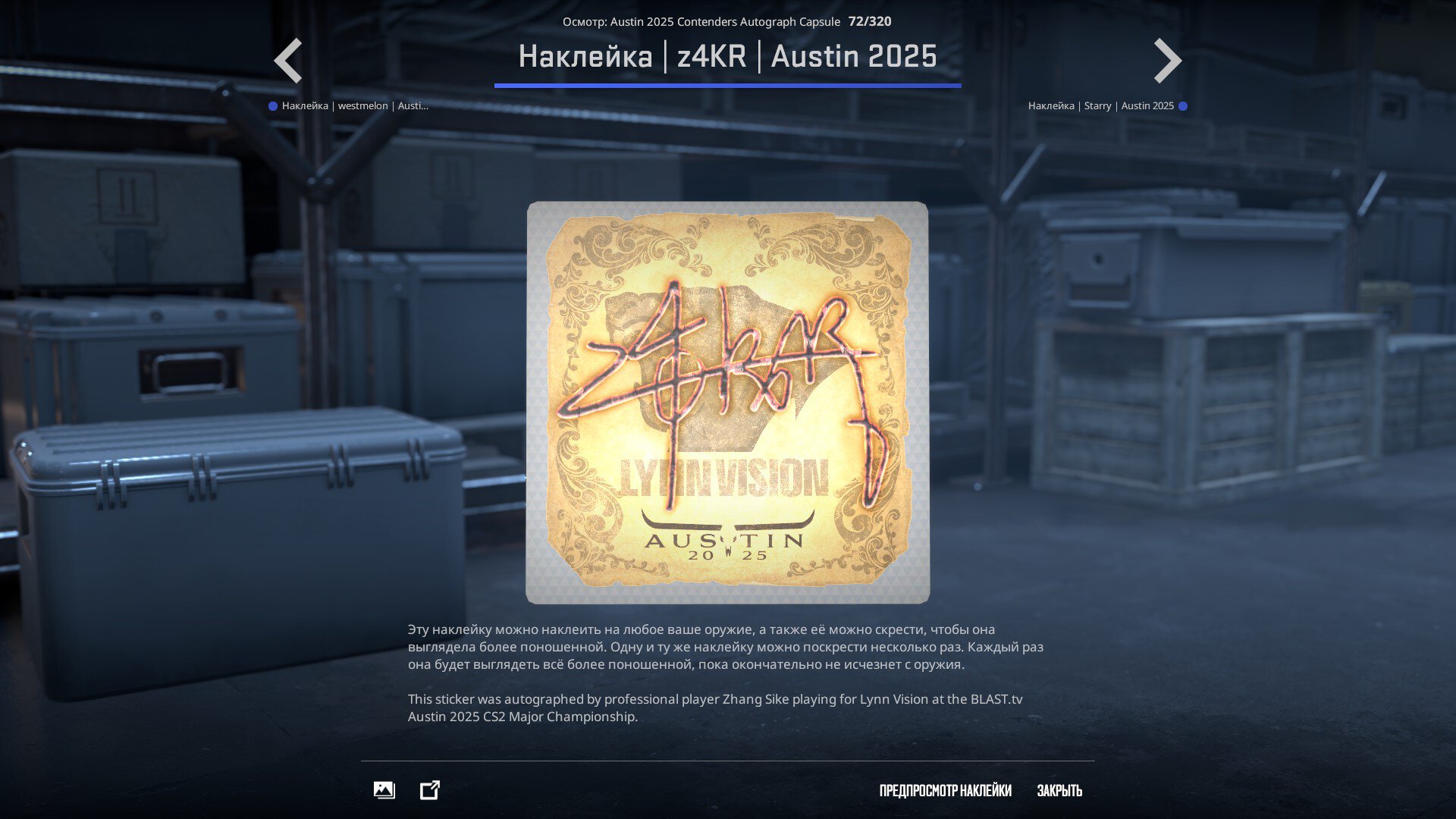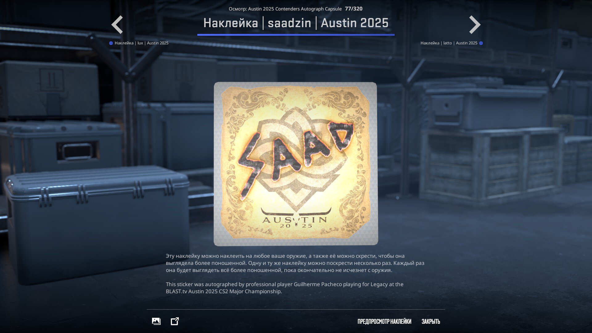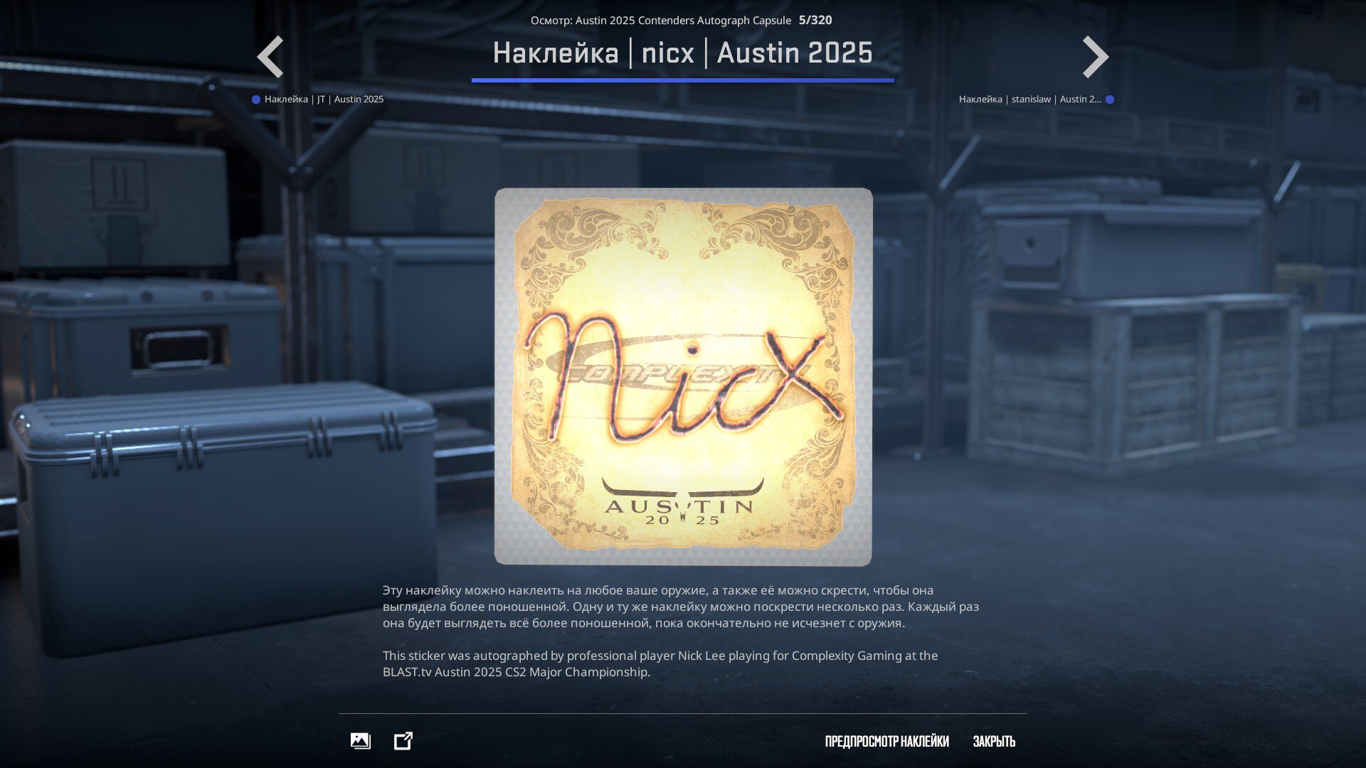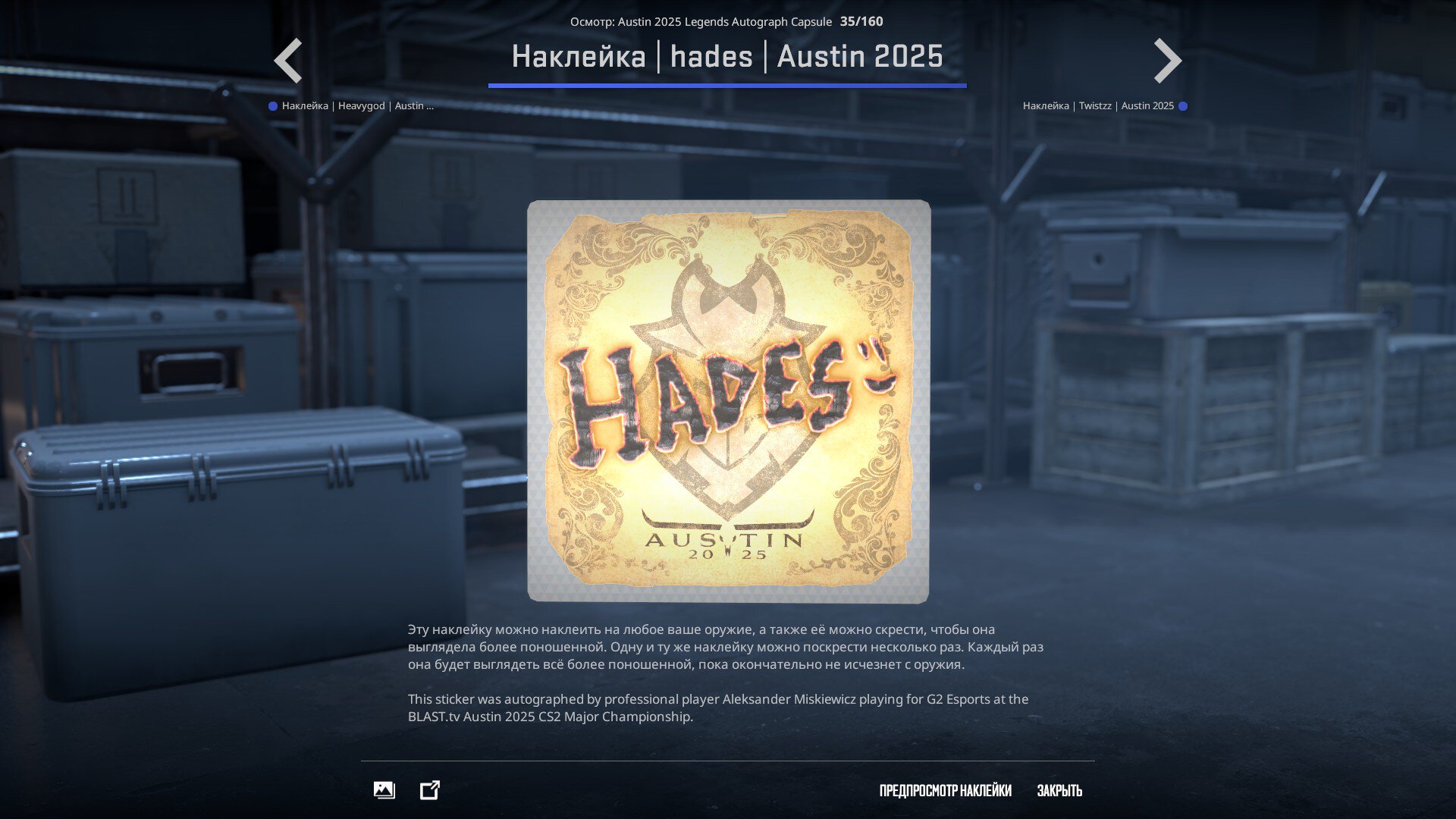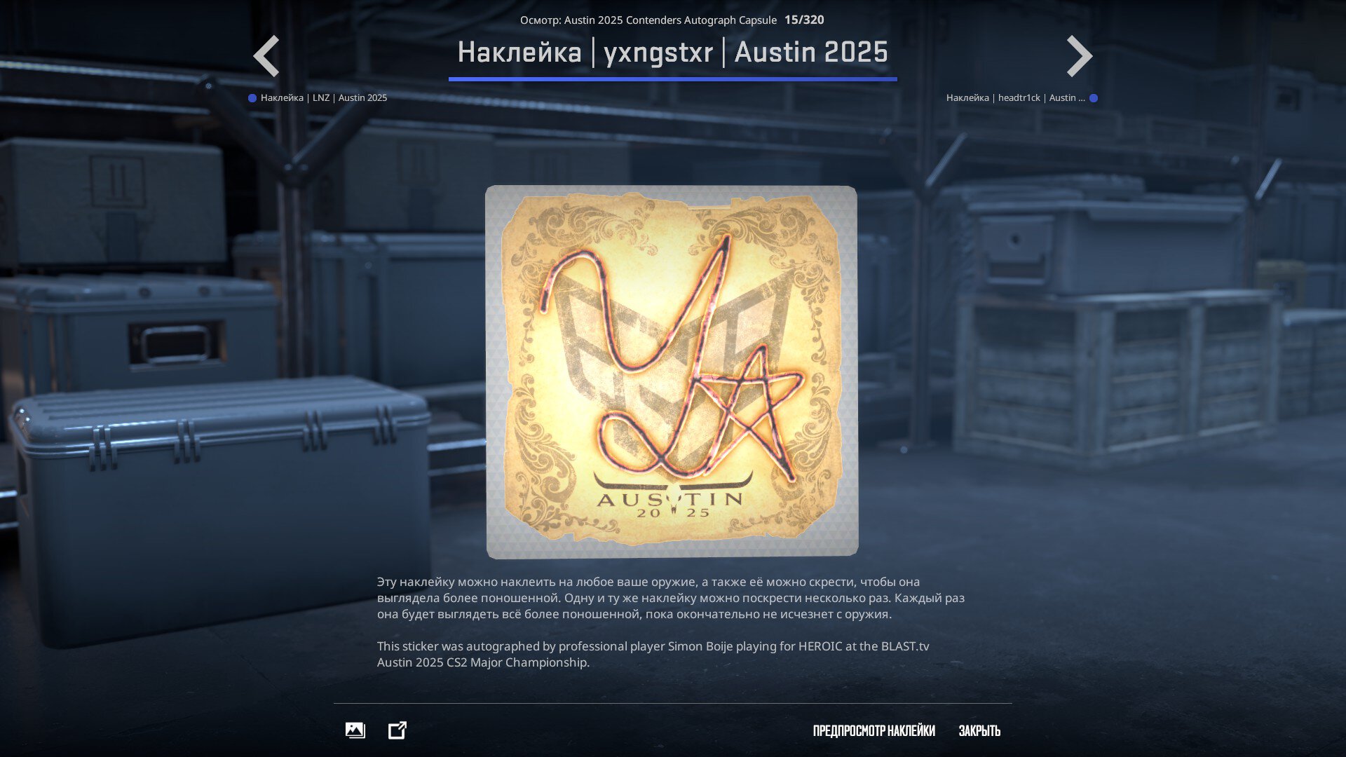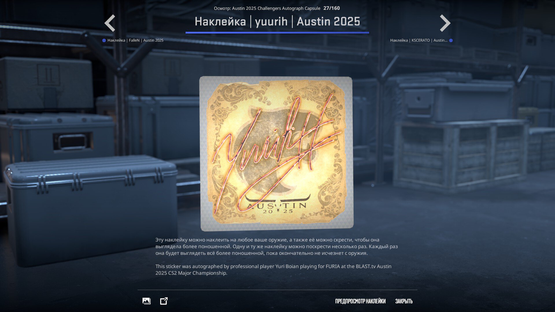 В CS 2 добавили предметы к BLAST Austin Major 2025, в том числе – автографы игроков. Они доступны в 4 качествах.