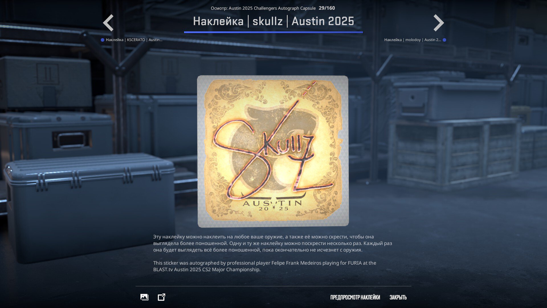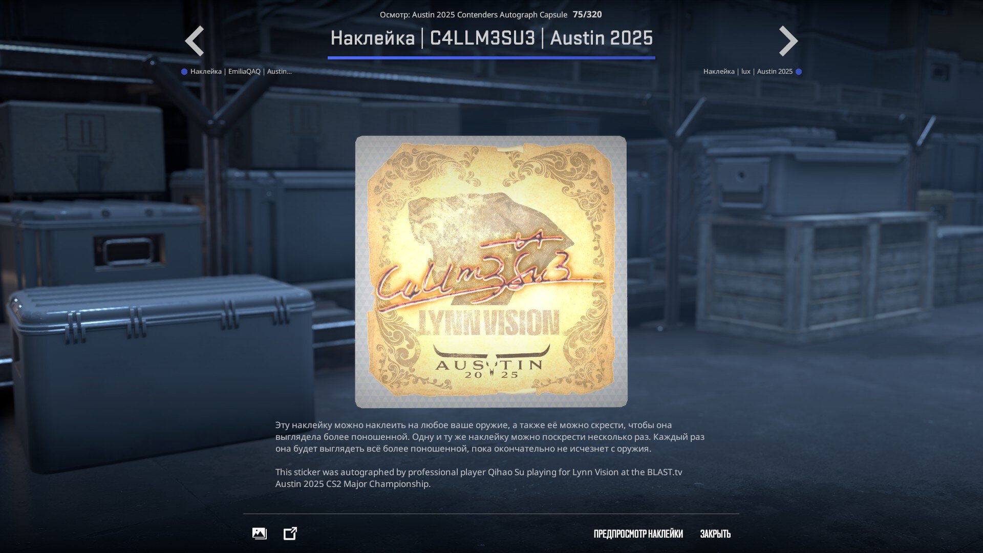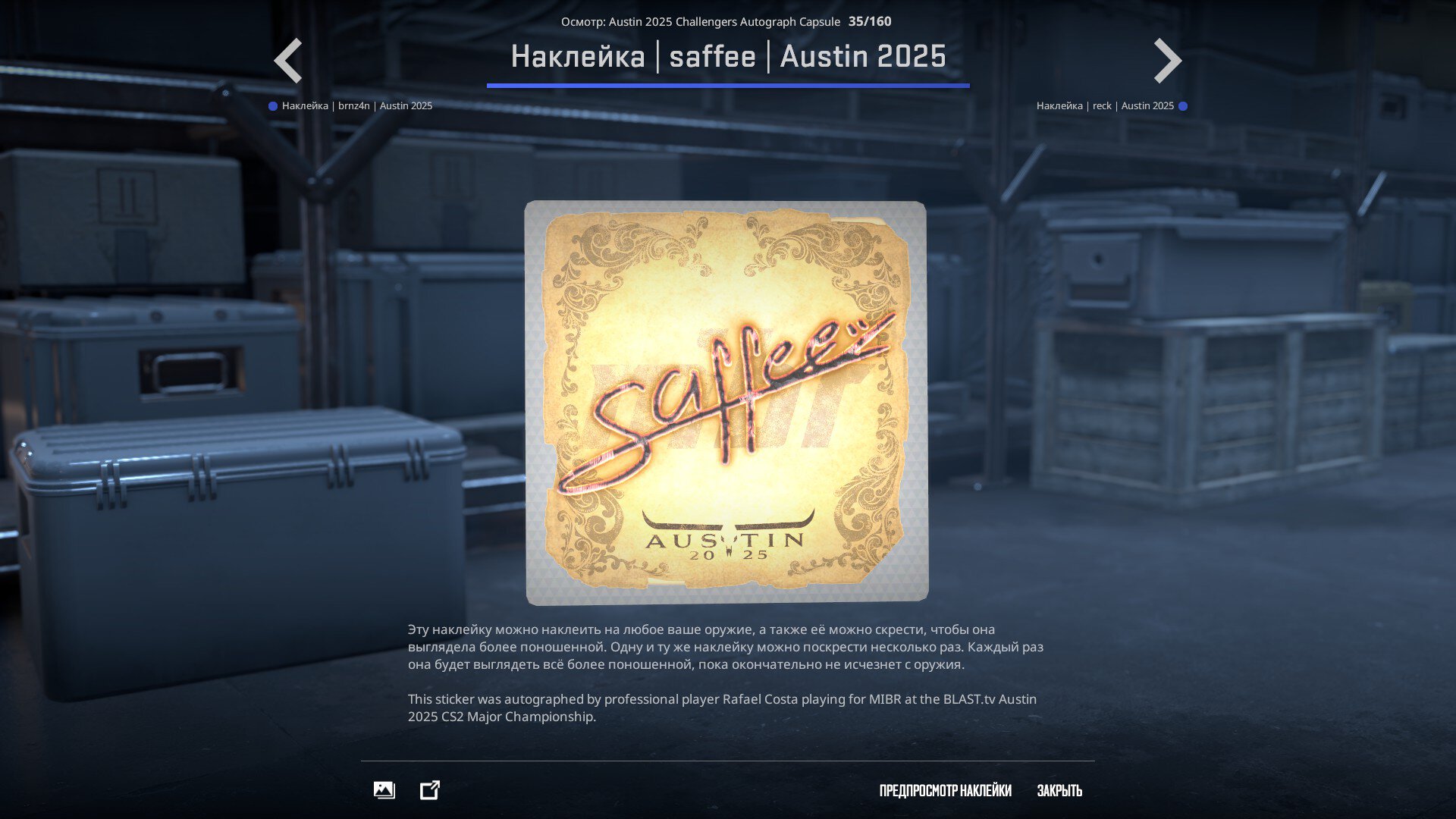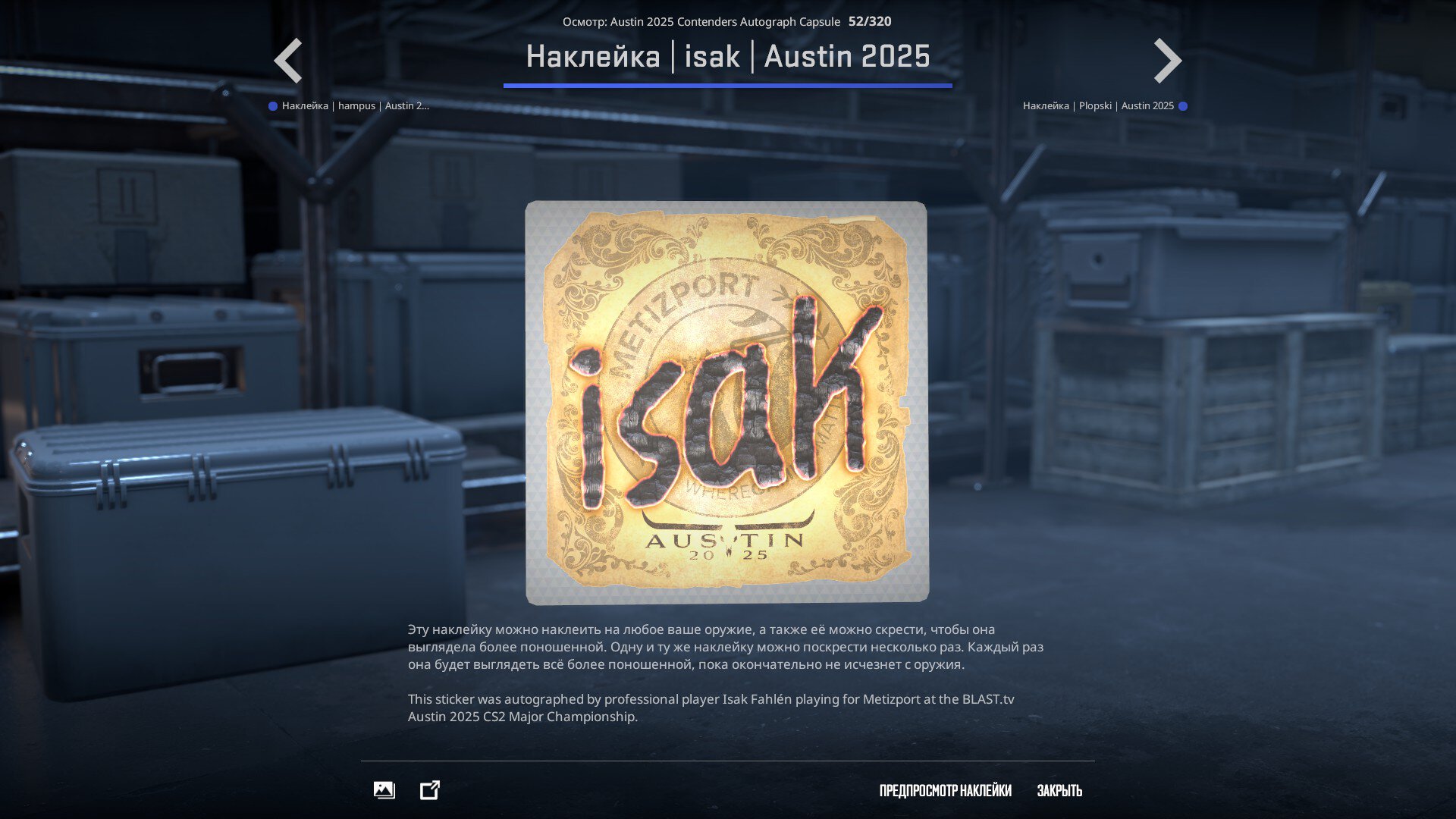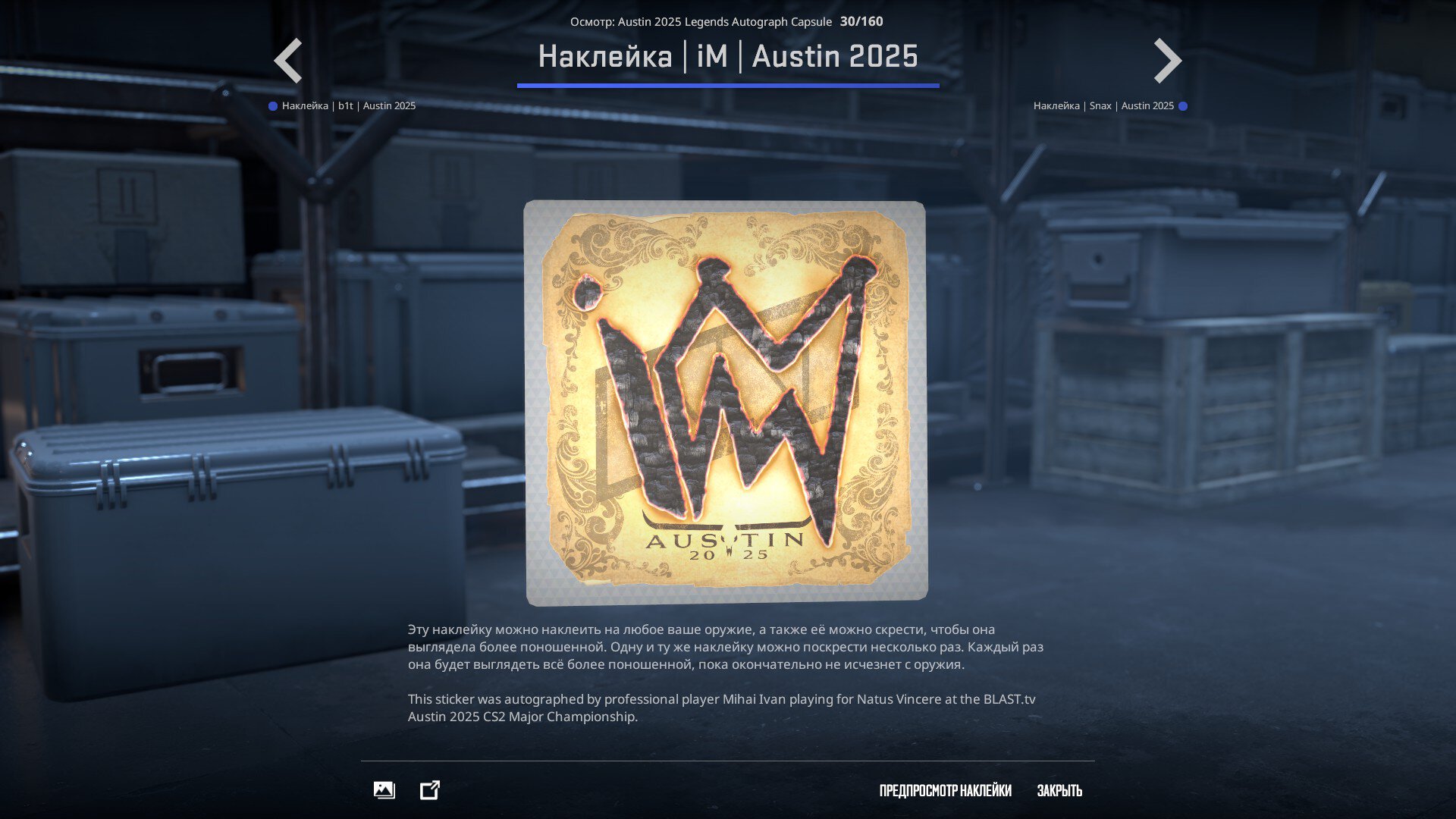 В CS 2 добавили предметы к BLAST Austin Major 2025, в том числе – автографы игроков. Они доступны в 4 качествах.