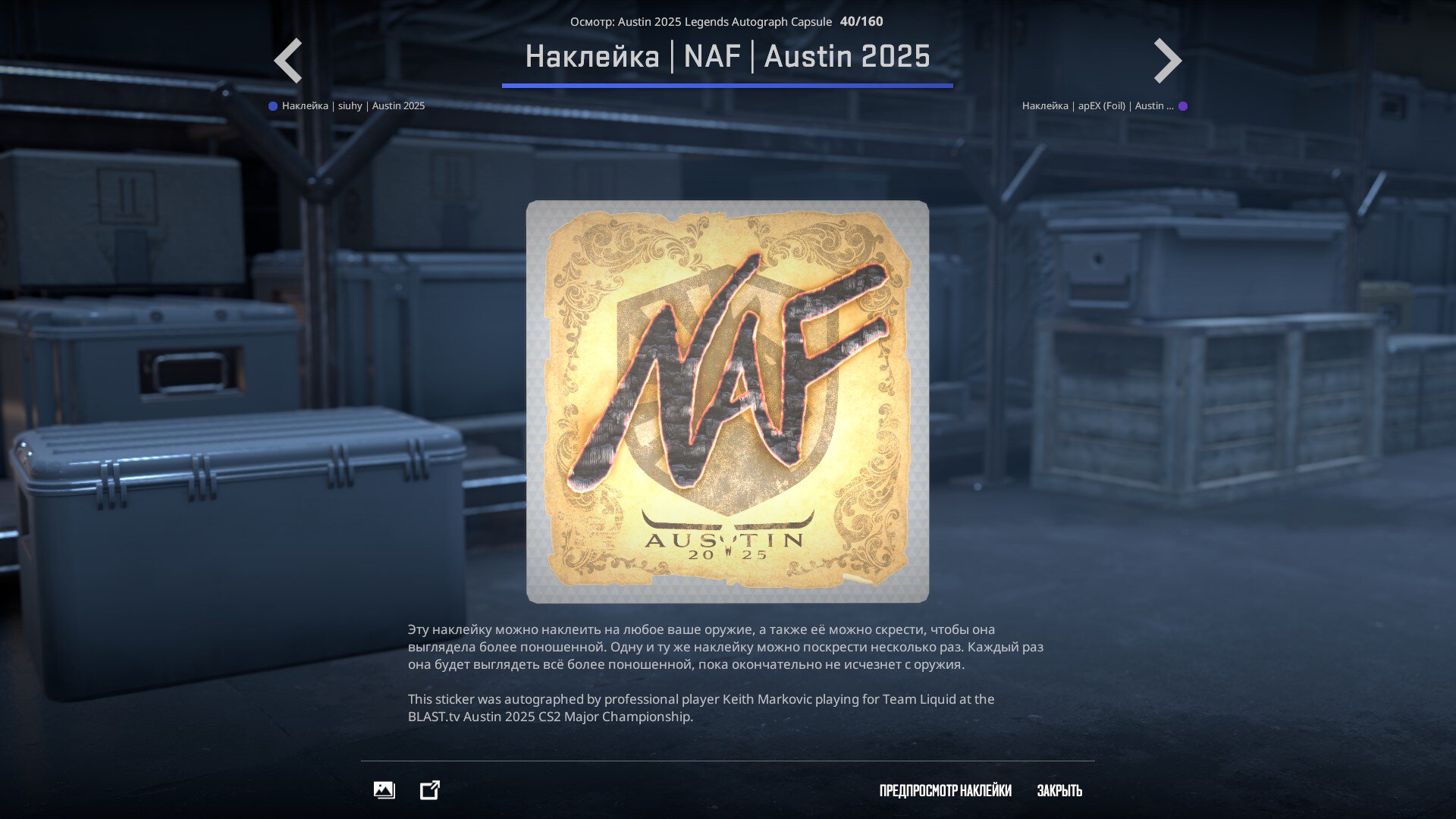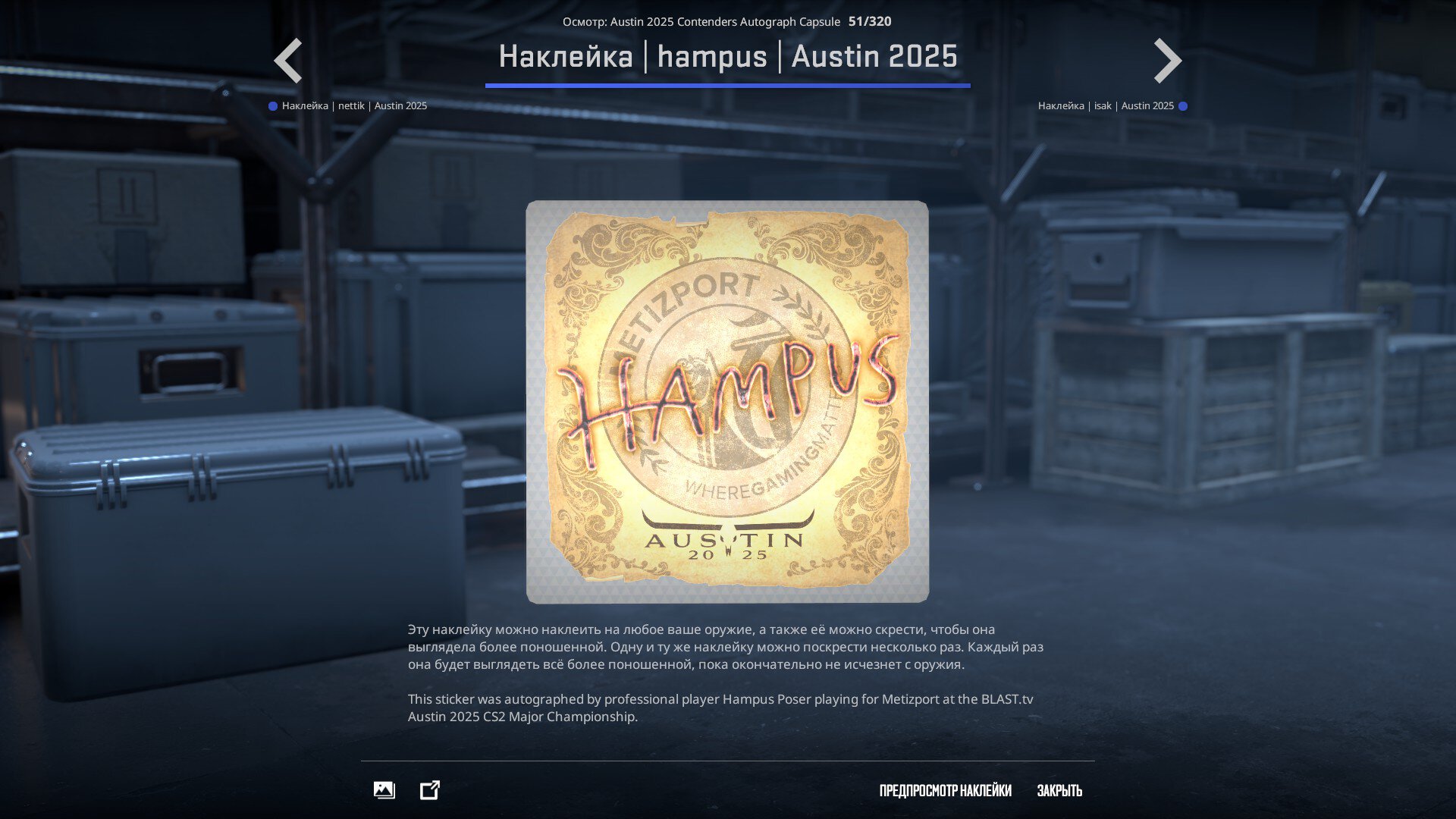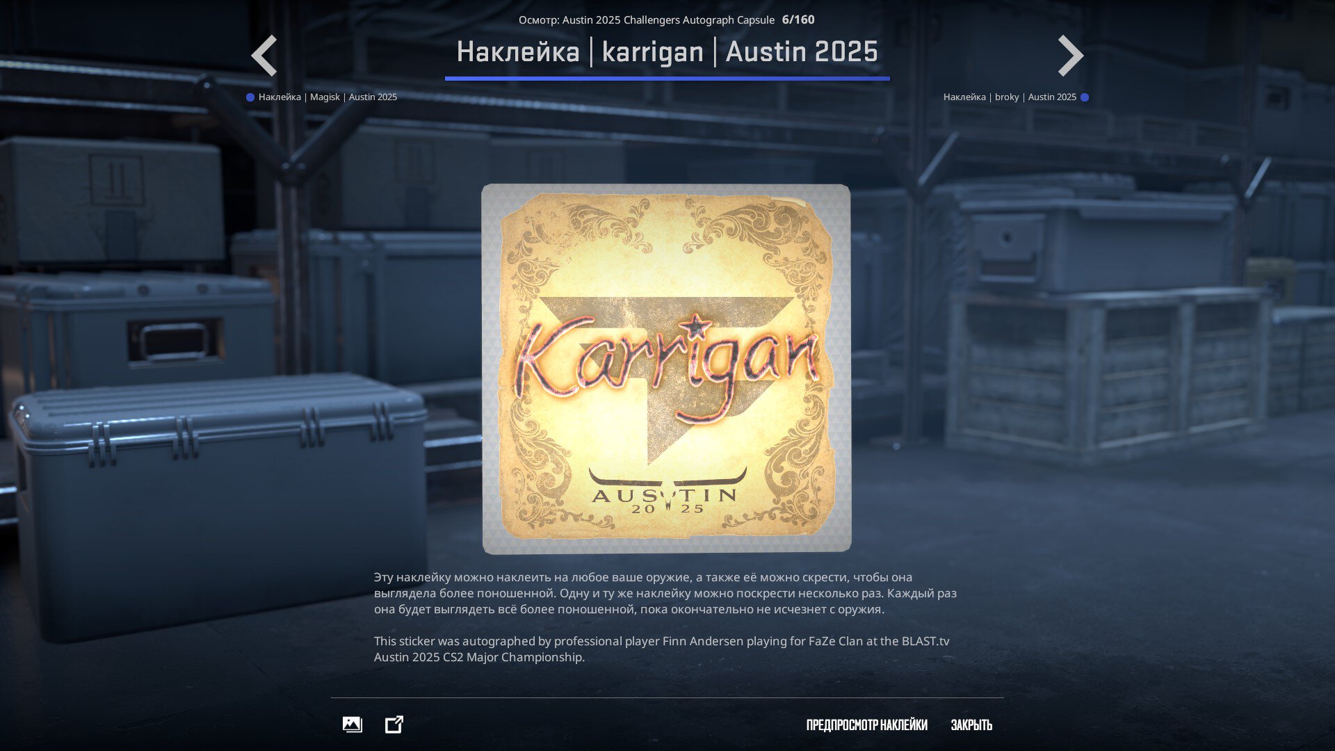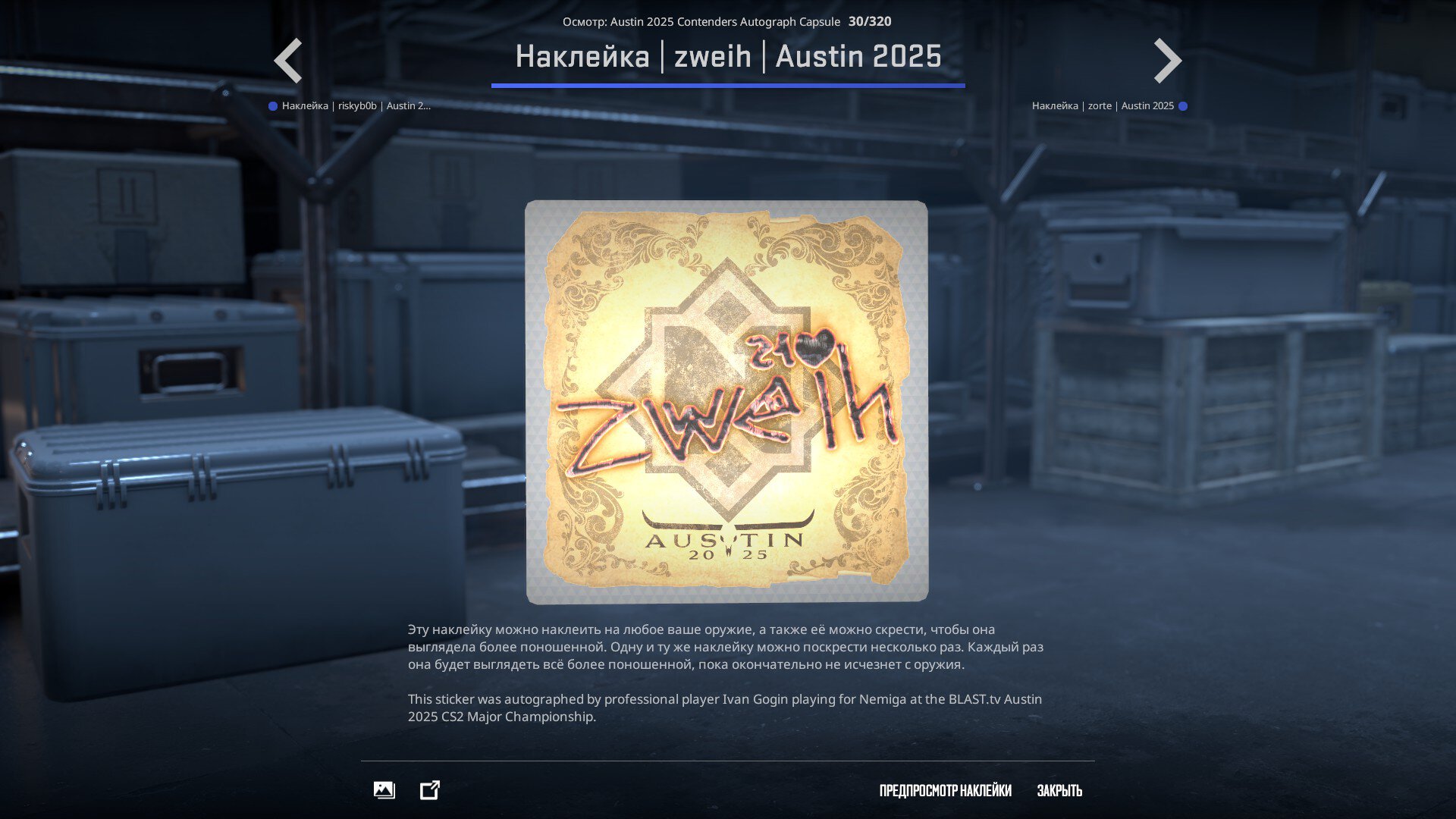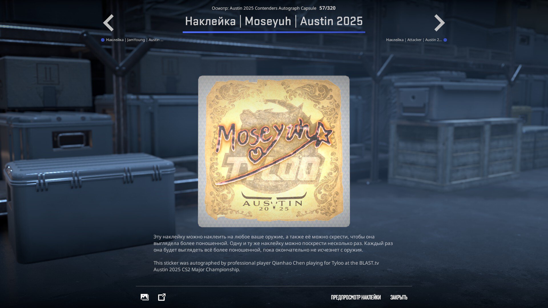 В CS 2 добавили предметы к BLAST Austin Major 2025, в том числе – автографы игроков. Они доступны в 4 качествах.