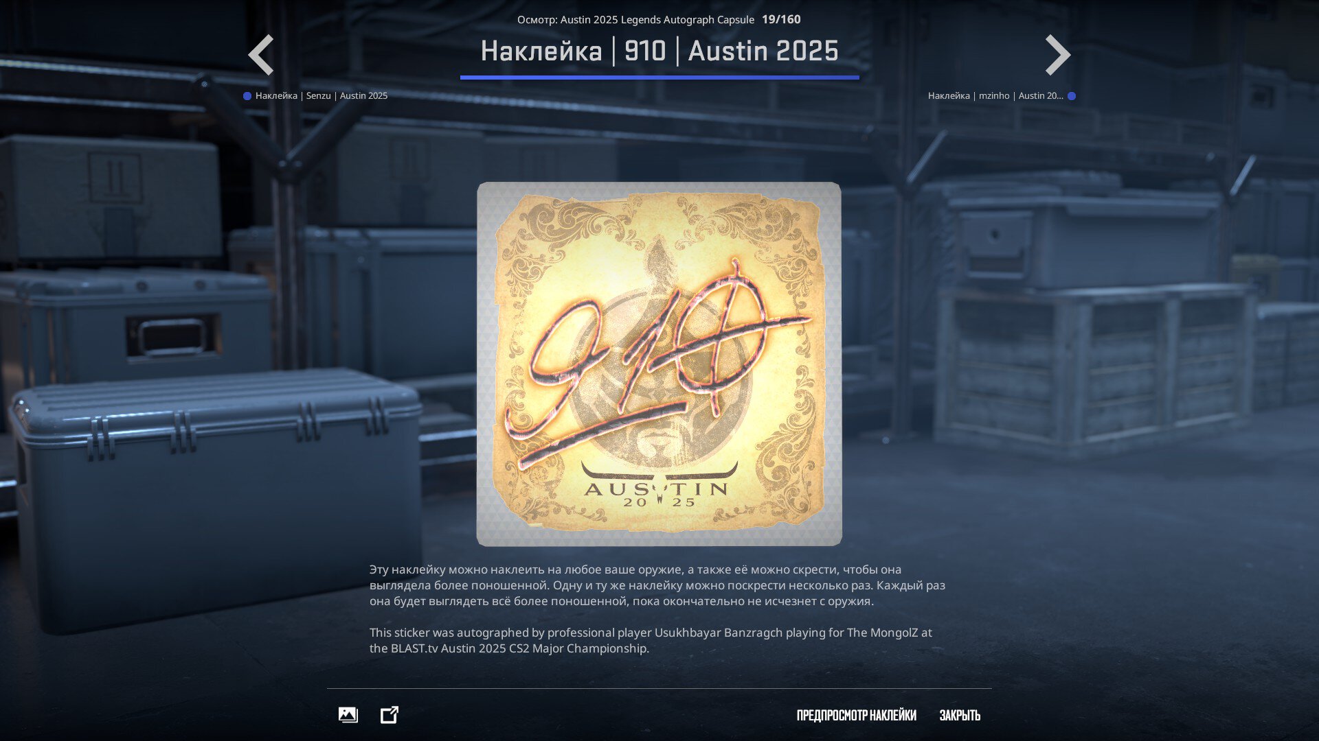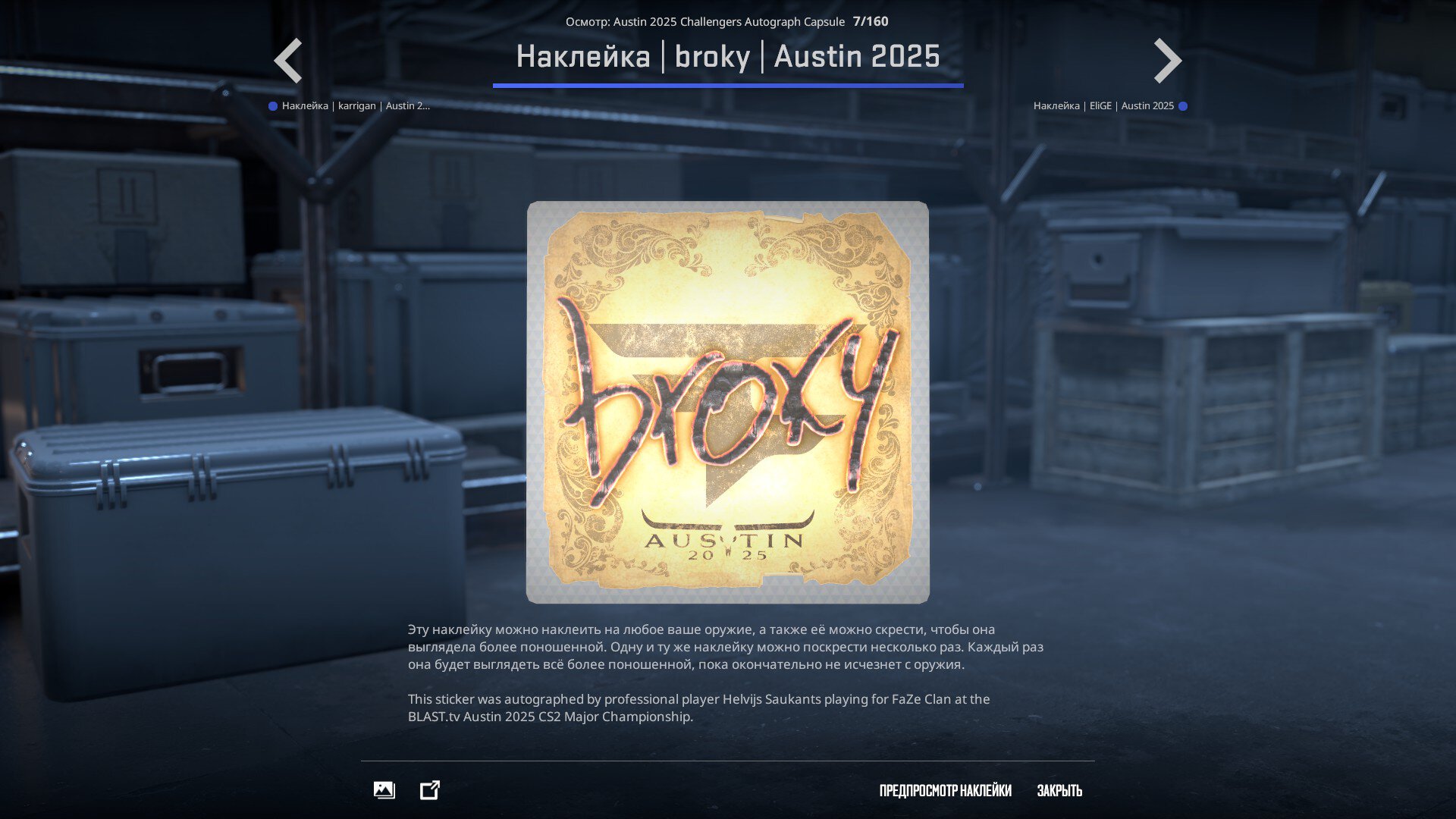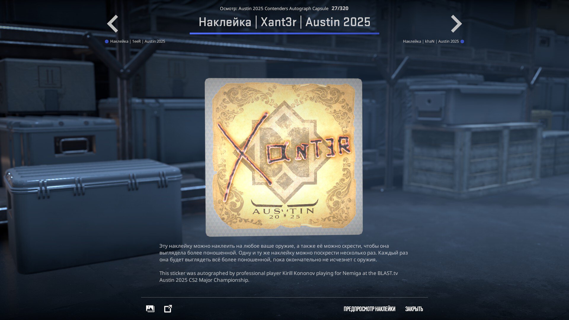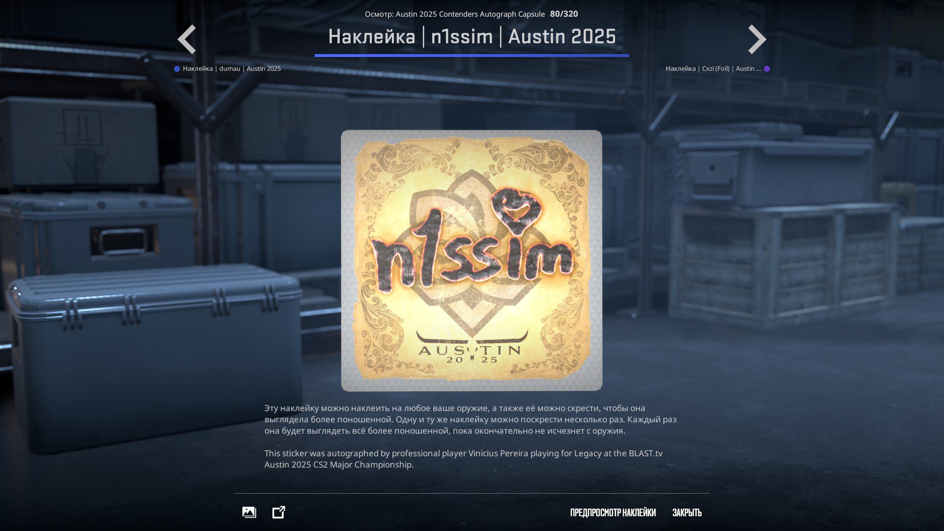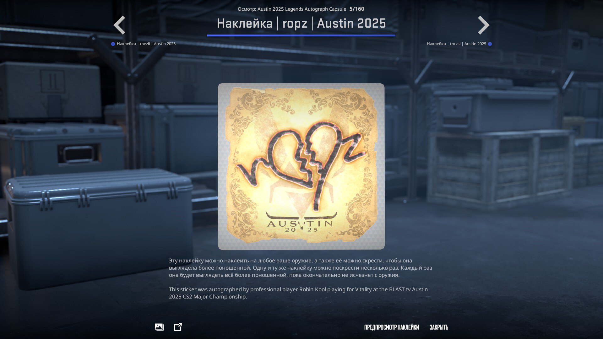 В CS 2 добавили предметы к BLAST Austin Major 2025, в том числе – автографы игроков. Они доступны в 4 качествах.