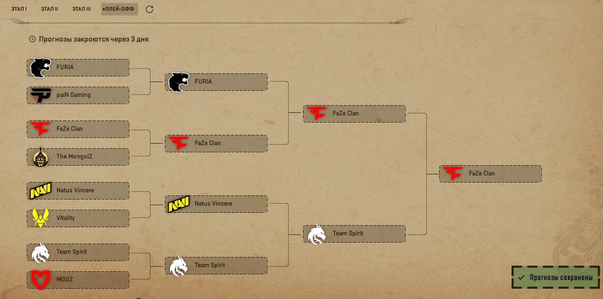 Прогнозы на плей-офф BLAST Austin Major 2025 можно делать до начала матчей – 19 июня 22:00 по Москве.