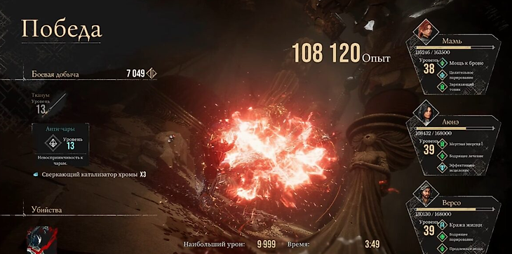 - Награда за победу. Игроки, одолевшие Ткача, получают шанс завладеть эксклюзивным оружием для Маэль – «Тканум». Помимо этого, они могут получить пиктос «Анти-чары», который делает персонажа невосприимчивым к заклинаниям. Также в качестве добычи можно получить ретушь и три сверкающих катализатора хромы.
