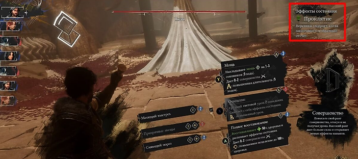 Однако, стоит учесть, что сражение с подобным противником может быть сложным. С первых же минут сражения он насылает на воинов «Проклятие» – состояние, от которого нет спасения. Если не избавиться от дебаффа, то через 8 ходов пораженный им персонаж умрёт мгновенно.