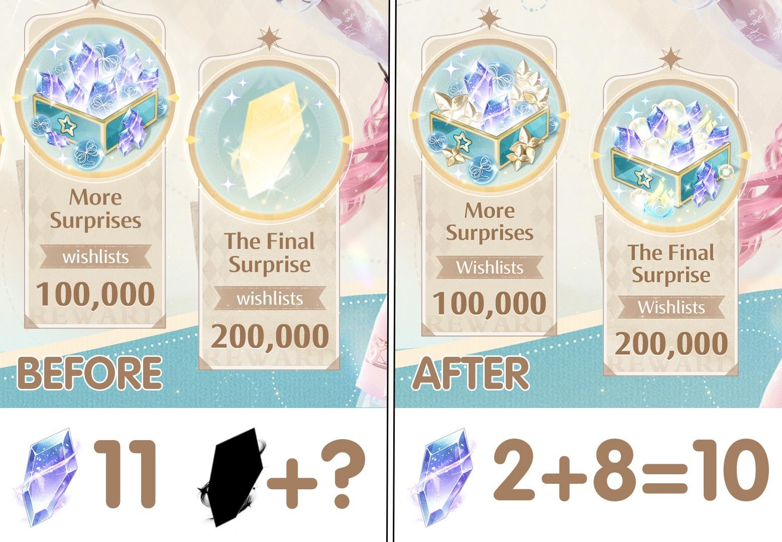 Infold допускает фатальные ошибки в коммуникации. Во время кампании наград за добавление игры в вишлист на странице в Steam игроки заметили, что изображения с призами отличаются: изначально за достижение 100 000 вишей авторы Infinity Nikki обещали коробку с 10 постоянными крутками. Однако позже без предупреждения картинку обновили, и вместо десяти круток стало только две. Сообщество сразу заподозрило неладное, обвинив разработчиков в обмане. Те попытались загладить вину и пообещали дополнительный подарок, но на главный вопрос – почему это произошло – так и не ответили.