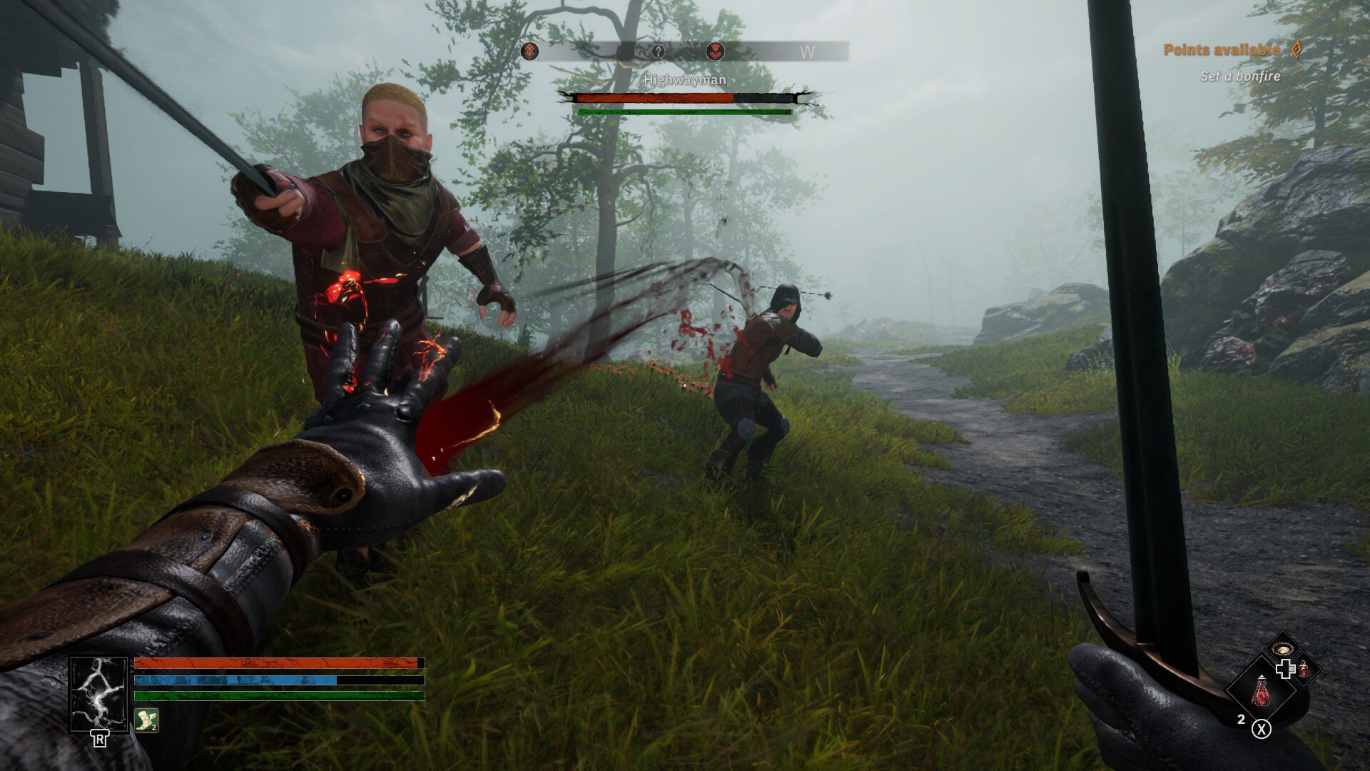 Перед тяжелым боем откройте рюкзак и поищите усиливающие расходники. Там наверняка найдутся зелья, которые добавят ударам вампиризм или эффект воспламенения. Если в инвентаре пусто, сбегайте к алхимическому столу. Все же пара дополнительных единиц урона часто отделяют жизнь от смерти.