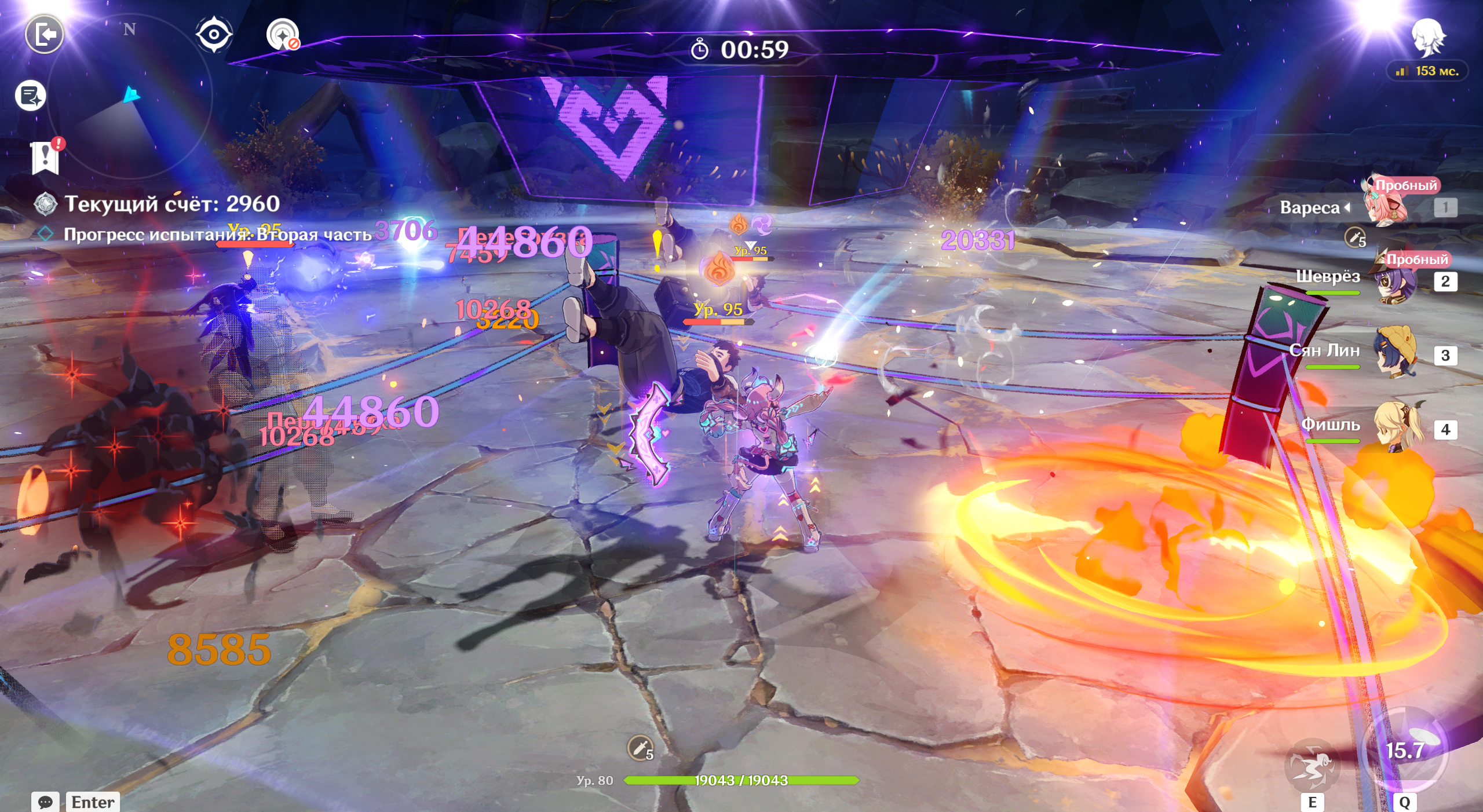 ● Энергия и ультимейты: для первого боя берите персонажей с низкой стоимостью ультимейта (например, Вареса, Фишль) или с хорошей регенерацией энергии (оружие Фавония). Во втором бою сосредоточьтесь на частом срабатывании Перегрузки.