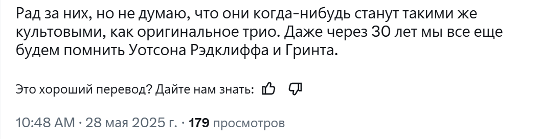 Хочется верить, что фанаты творчества Роулинг и фильмов о Гарри Поттере будут более благосклонны к юным актерам, ведь это всего лишь дети.