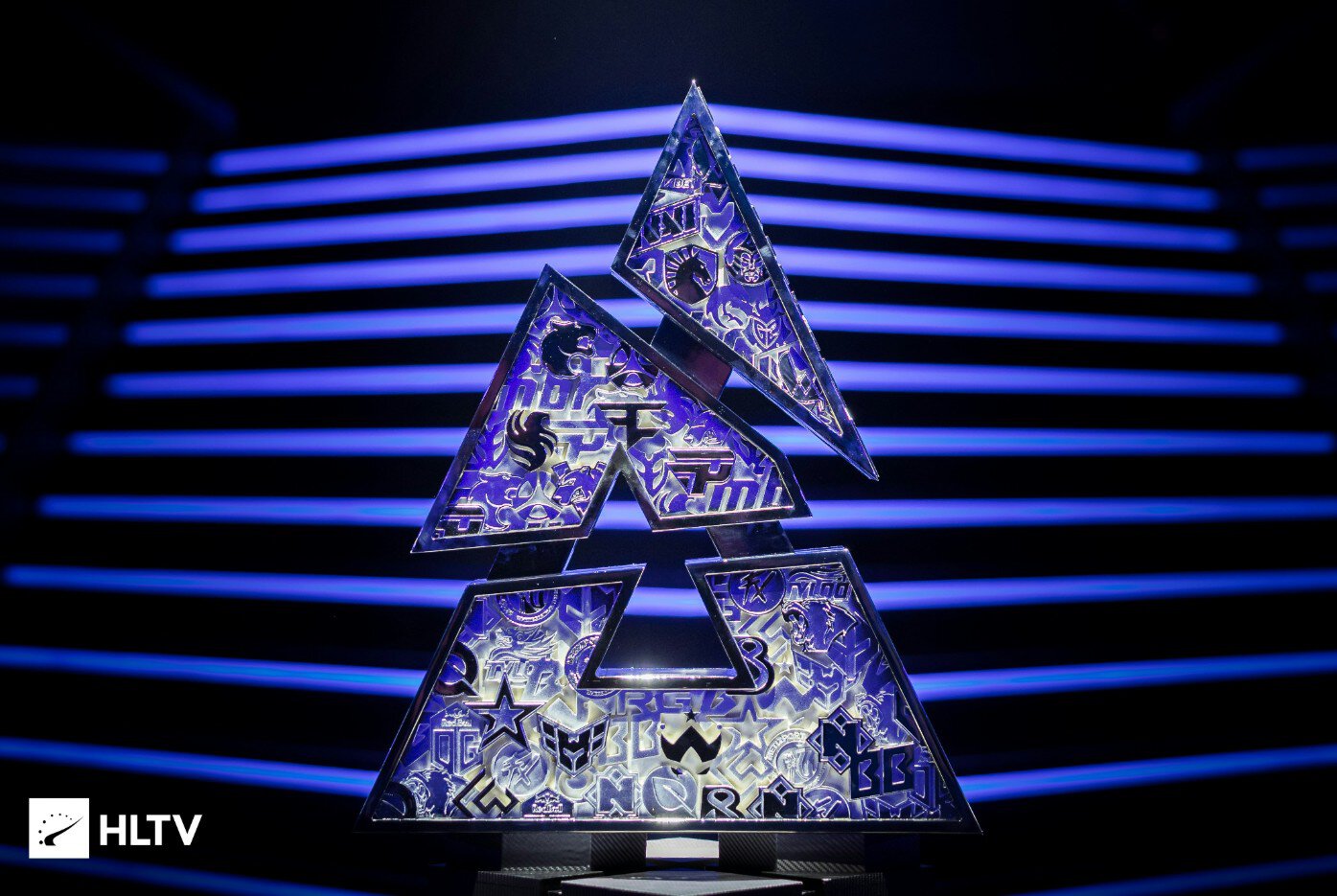 BLAST представила кубок мейджора в Остине! Вновь классический треугольник, только в этот раз серебристого цвета с выгравированными логотипами всех команд-участниц.