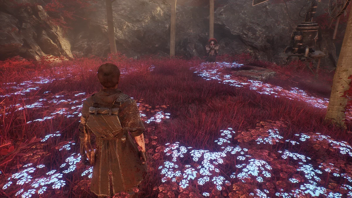 Рядом с входом в «Древнее Святилище» есть еще несколько локаций, которые ведут к Хромо-аббасту, торговцу Блабари и некоторым другим, но они пока вам недоступны. Единственное, что вы можете сделать – обойти красный лес по кругу и сразиться с боссом Хрома-Брюлером. Это не обязательное задание, но оно может дать дополнительные очки. Для перехода к локации «Древнее Святилище» в Clair Obscur Expedition 33 надо войти в портал между каменными выступами.