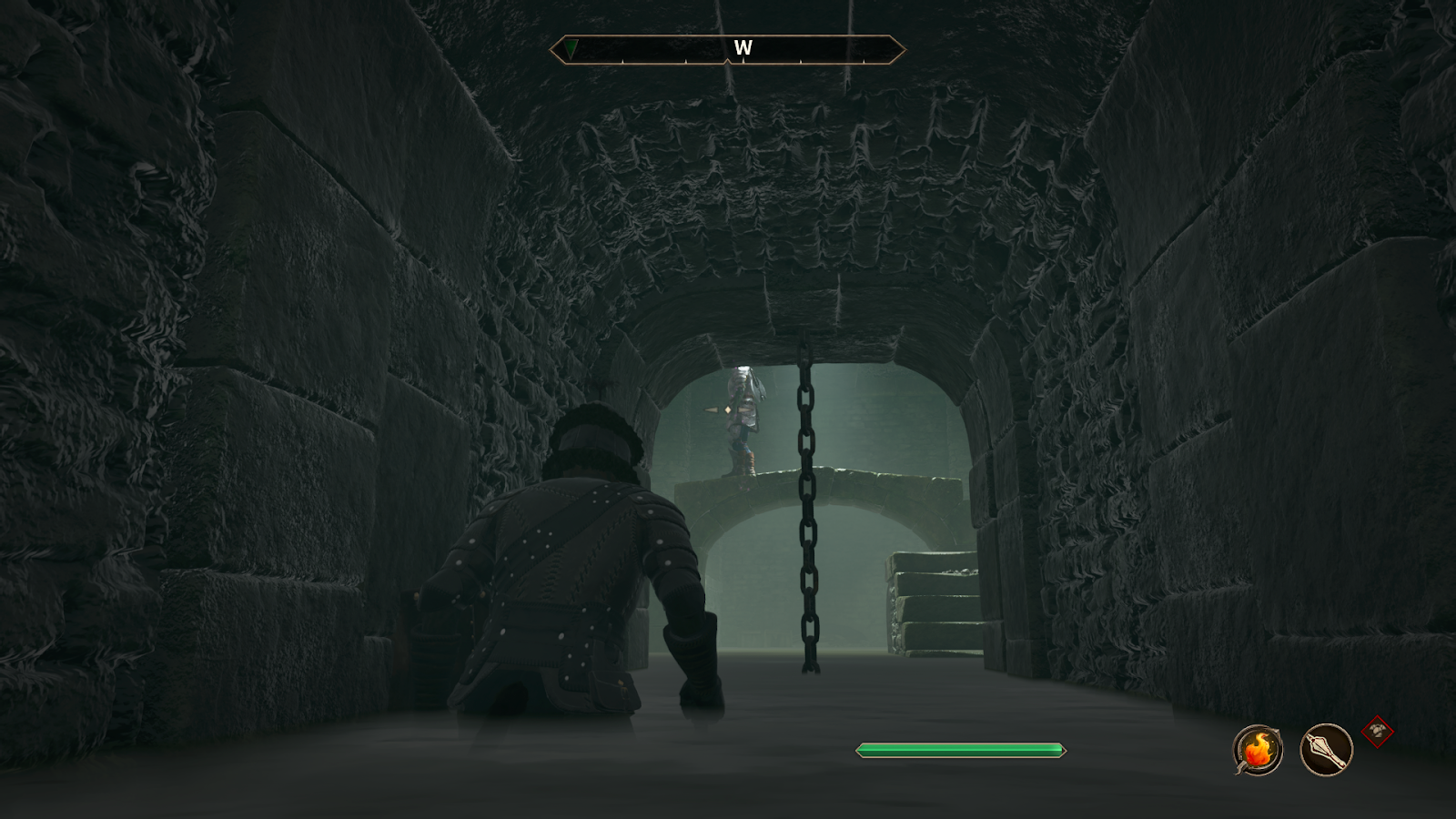 Далее предстоит долгий и опасный путь через канализацию, забытые катакомбы и залы, кишащие нежитью и ловушками. Освещение слабое, стены покрыты мхом и следами былых боев. Путь извилист и полон опасностей, но вы должны следовать по маркерам и обходить все препятствия, не попадаясь на глаза патрулям. В одном из залов, Зале Эпох, понадобится особая Стрела Высвобождения – ее следует использовать на древнем механизме, чтобы открыть нужный проход.