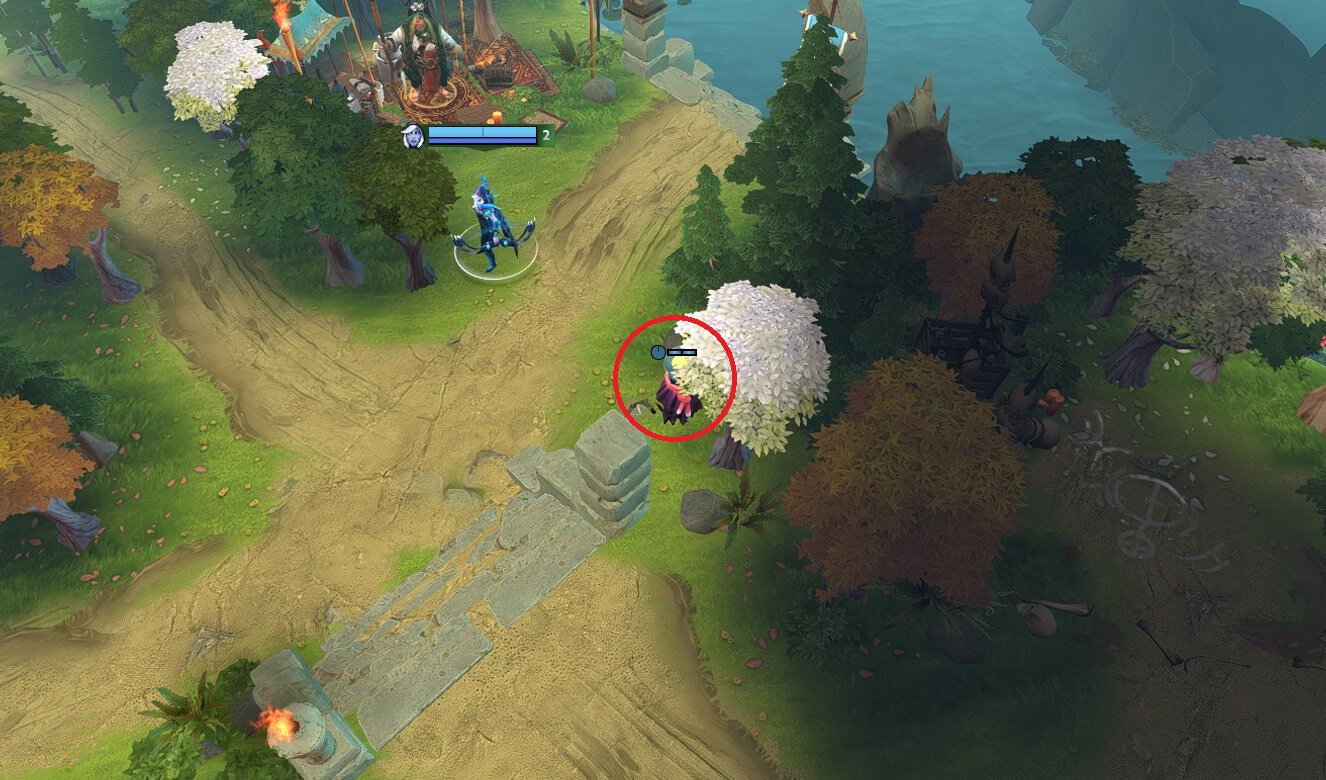 • Слева от большого лагеря в тройке сил Света. Шикарный вард для контроля этой области. Привычные Сентри обычно ставятся либо ниже, либо правее этого Обса.