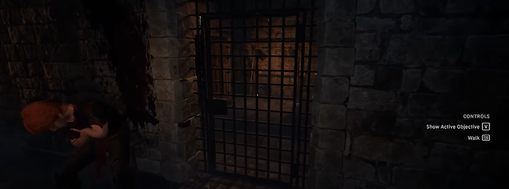 После того как Карэдок (Caradoc) поможет вам выбраться из тюремной камеры, двигайтесь направо по коридору. Вскоре вы заметите мертвого охранника, сидящего возле стола. Обыскав его тело, вы найдете ключ охраны (Guard Key). Он нужен для открытия соседней камеры, расположенной слева от вашей.