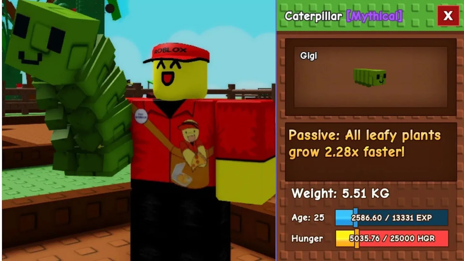 С шансом 25% вы можете получить гусеницу из Яйца насекомого. В магазине питомец появляется с вероятностью 3%. Стимулирует рост салатов и капусты в 2,28 раза в сравнении с обычным темпом развития.