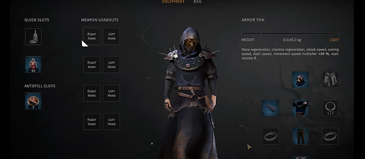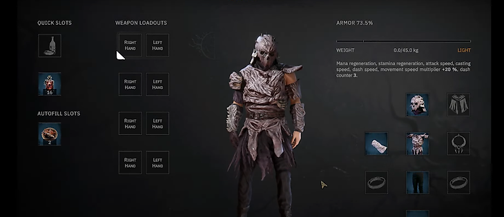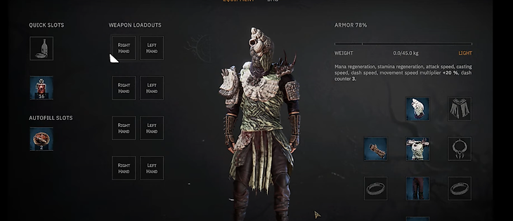 Комплект почти не шумит, что дает бонусы к стелсу и снижает агро от врагов. Особенно эффективен при использовании с оружием ближнего боя и ядами. Эту броню часто выбирают ассасины, лучники и разведчики — классы, полагающиеся на внезапность, скорость и урон с фланга.