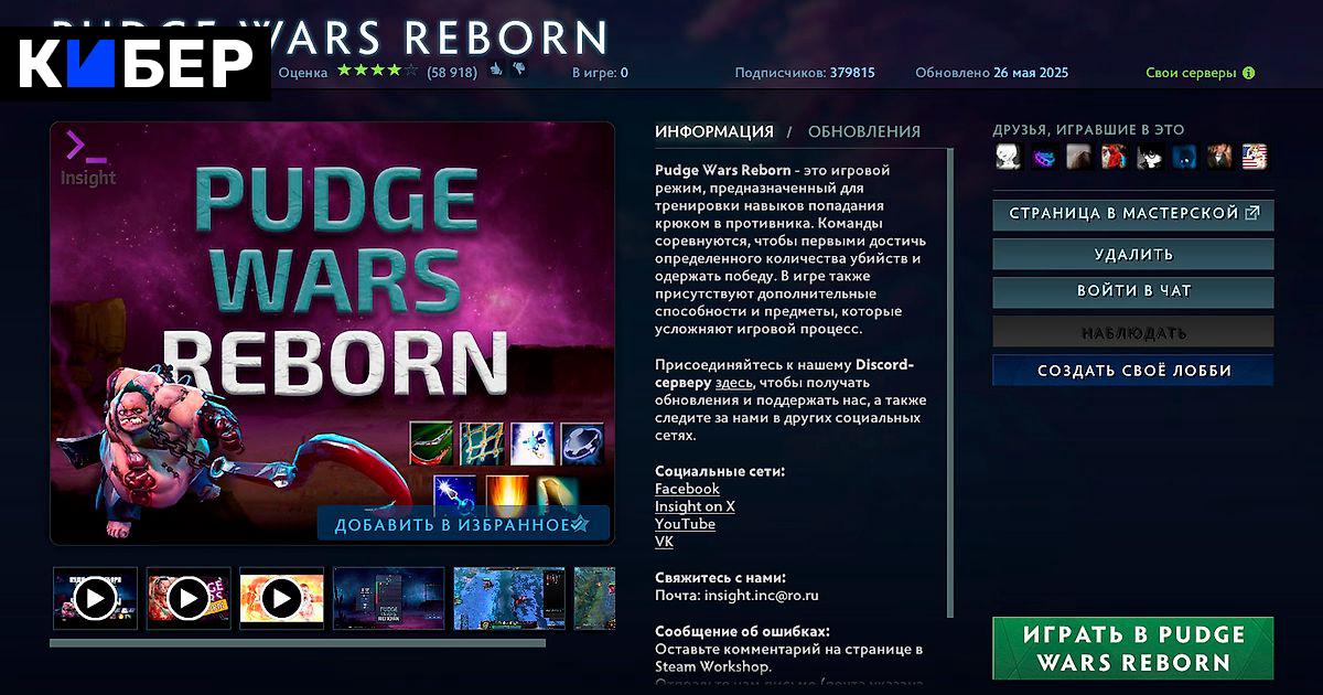 Почему Pudge Wars Reborn остаётся актуальным даже сейчас, в 2025-м? Благодаря активному сообществу и поддержке разработчиков. Кастомка регулярно обновляется – последний патч вышел в мае 2025 года, привнеся очередную порцию баланса и фишек. На пике в Pudge Wars Reborn одновременно играли несколько тысяч человек (фиксировалось свыше 3000 онлайн), а всего в мастерской Steam этой кастомки подписаны почти 380 тысяч пользователей. Для фанатского режима это отличные показатели, сопоставимые с другими популярными кастомками вроде Dota 1x6 или Overthrow. Любой желающий всегда может «ворваться» – достаточно зайти в ИгротекуDota 2 и выбрать Pudge Wars Reborn из списка.