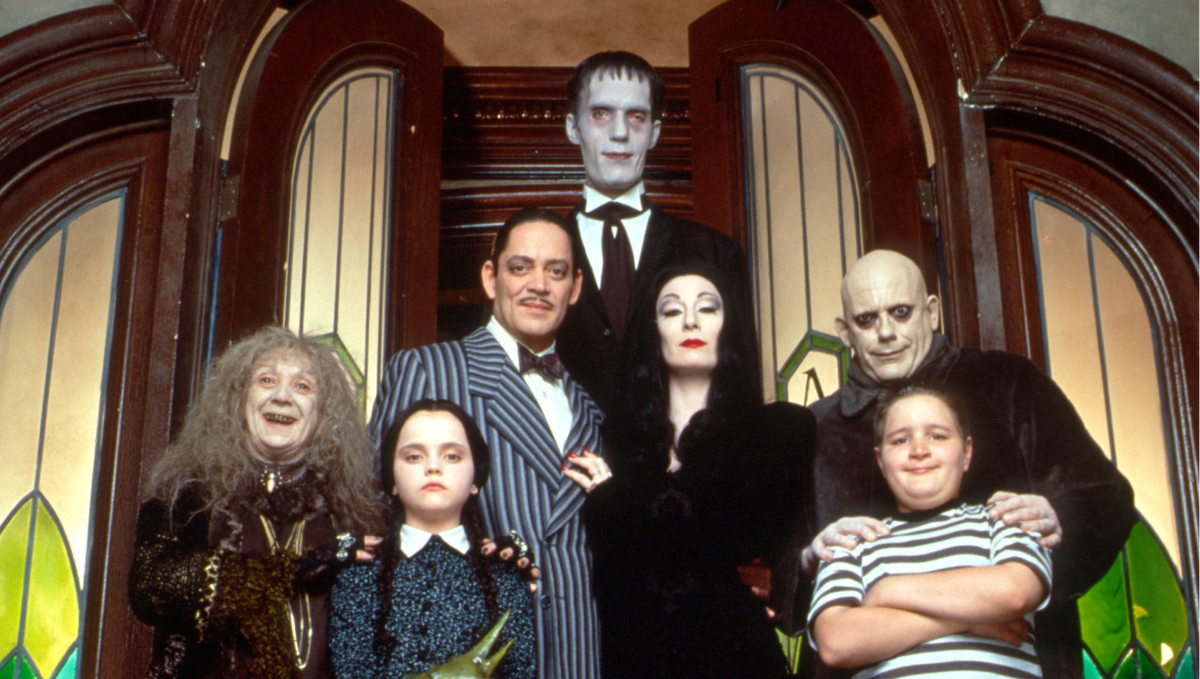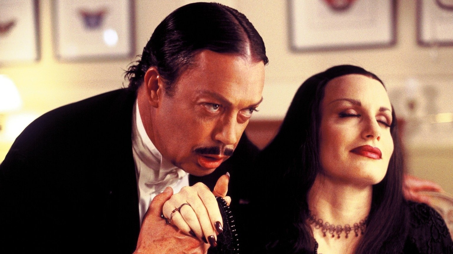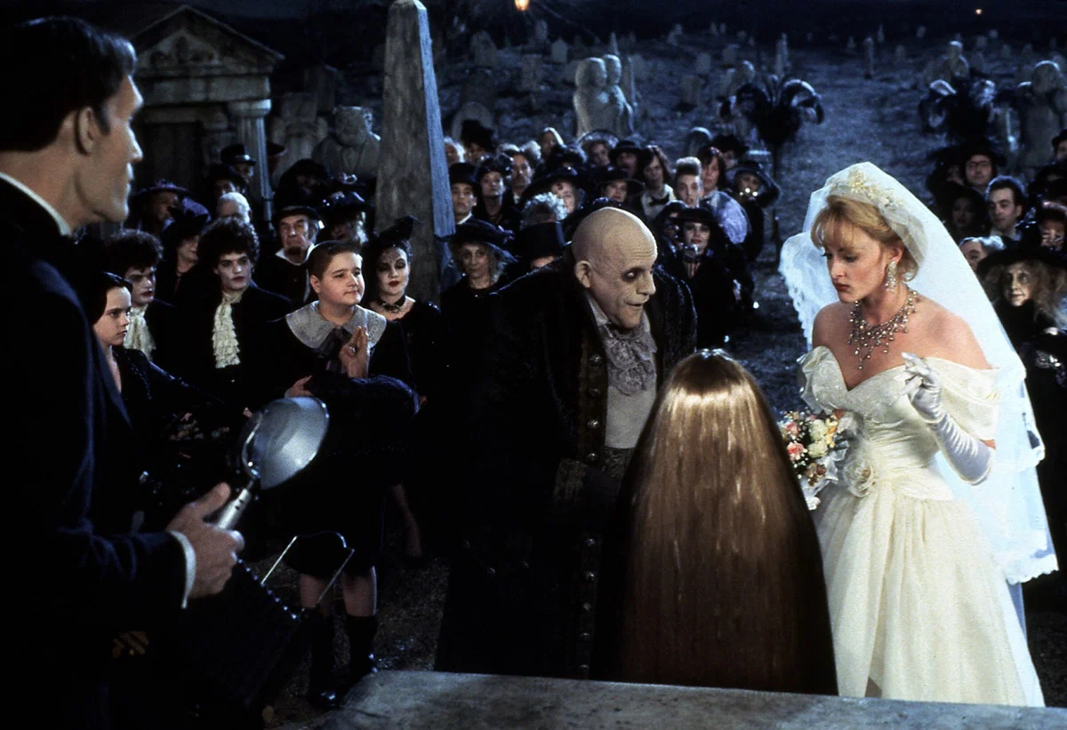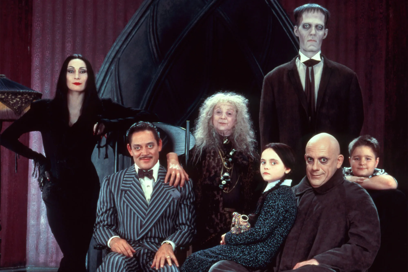 Картина выделяется великолепным актерским составом: Рауль Хулиа (Гомес), Анжелика Хьюстон (Мортиша), Кристофер Ллойд (Фестер) и юная Кристина Риччи (Уэнсдей), чья мрачная харизма стала визитной карточкой фильма. Сюжет разворачивается вокруг возвращения Фестера, который, как выясняется, страдает амнезией после исчезновения в Бермудском треугольнике и был усыновлен мошенницей Эбигейл Крейвен. Поначалу он участвует в заговоре против семьи, но постепенно проникается к ней симпатией и в финале помогает разоблачить злоумышленников. Фильм получил признание критиков и зрителей, был номинирован на премии «Оскар», «Золотой глобус» и BAFTA за костюмы, грим и актерскую игру. Несмотря на трудности в производстве, включая смену студии и переписывание сценария, лента стала коммерчески успешной и заложила основу для дальнейших экранизаций.