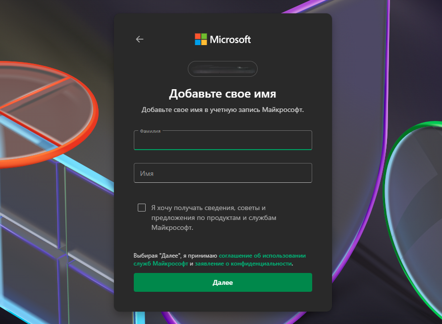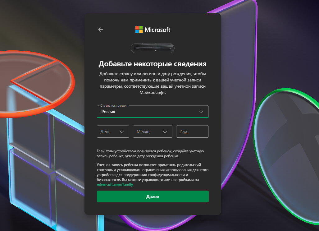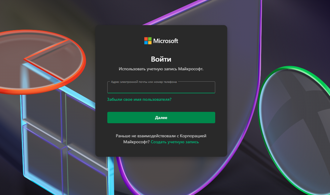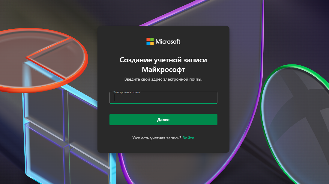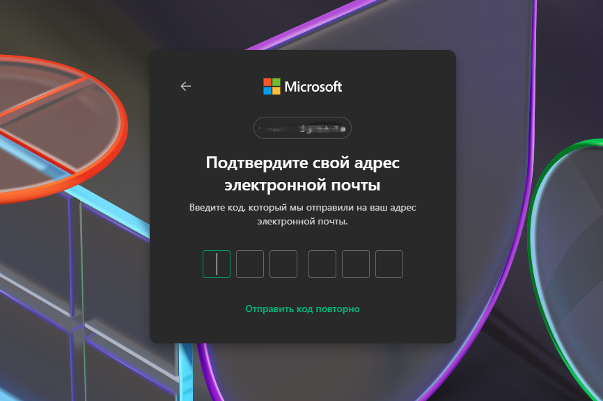 Ваша учетная запись Microsoft создана. Войдите в нее, используя указанный e-mail и код с почты.