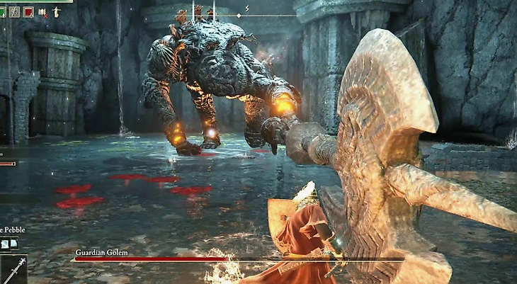 Страж-голем – огромный голем из камня, вооруженный либо массивным луком, либо алебардой из темного камня, иногда пропитанной магией. В начале боя он лежит неподвижно, но при приближении игрока пробуждается и начинает сражаться.