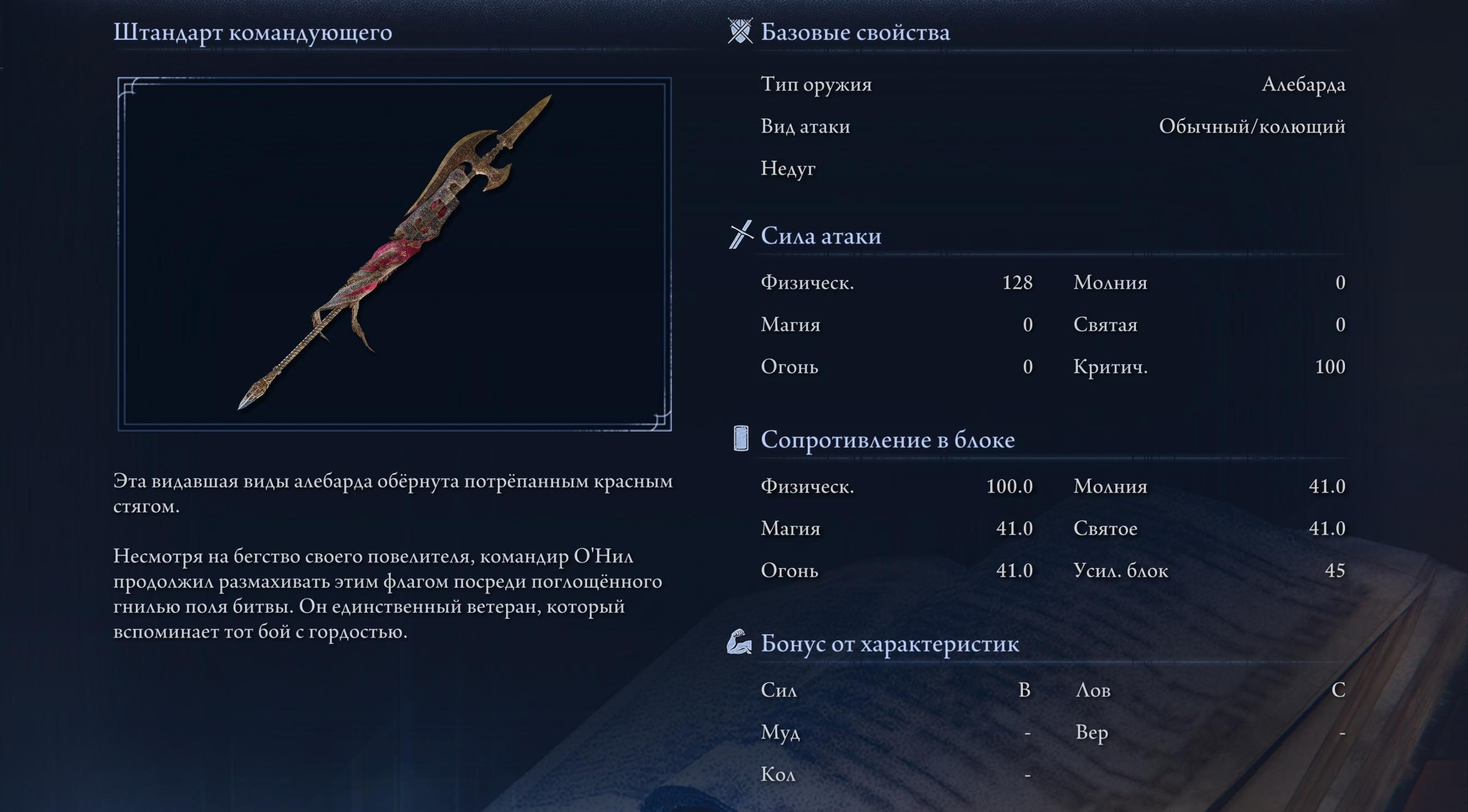 Штандарт командующего (эпическая алебарда): алебарда без уникального эффекта, но обладающая высоким базовым уроном. Отлично сочетается с боевыми навыками Стража, которые ориентированы на эффективное использование этого вида оружия