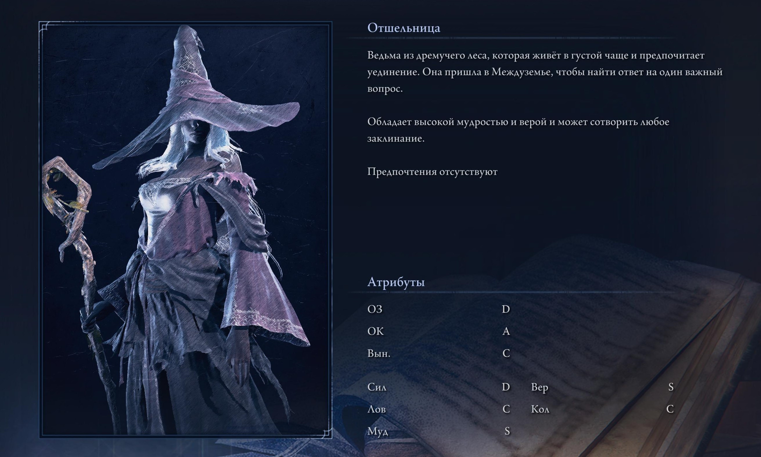 Лучшие характеристики: Ловкость (A), Колдовство (B)