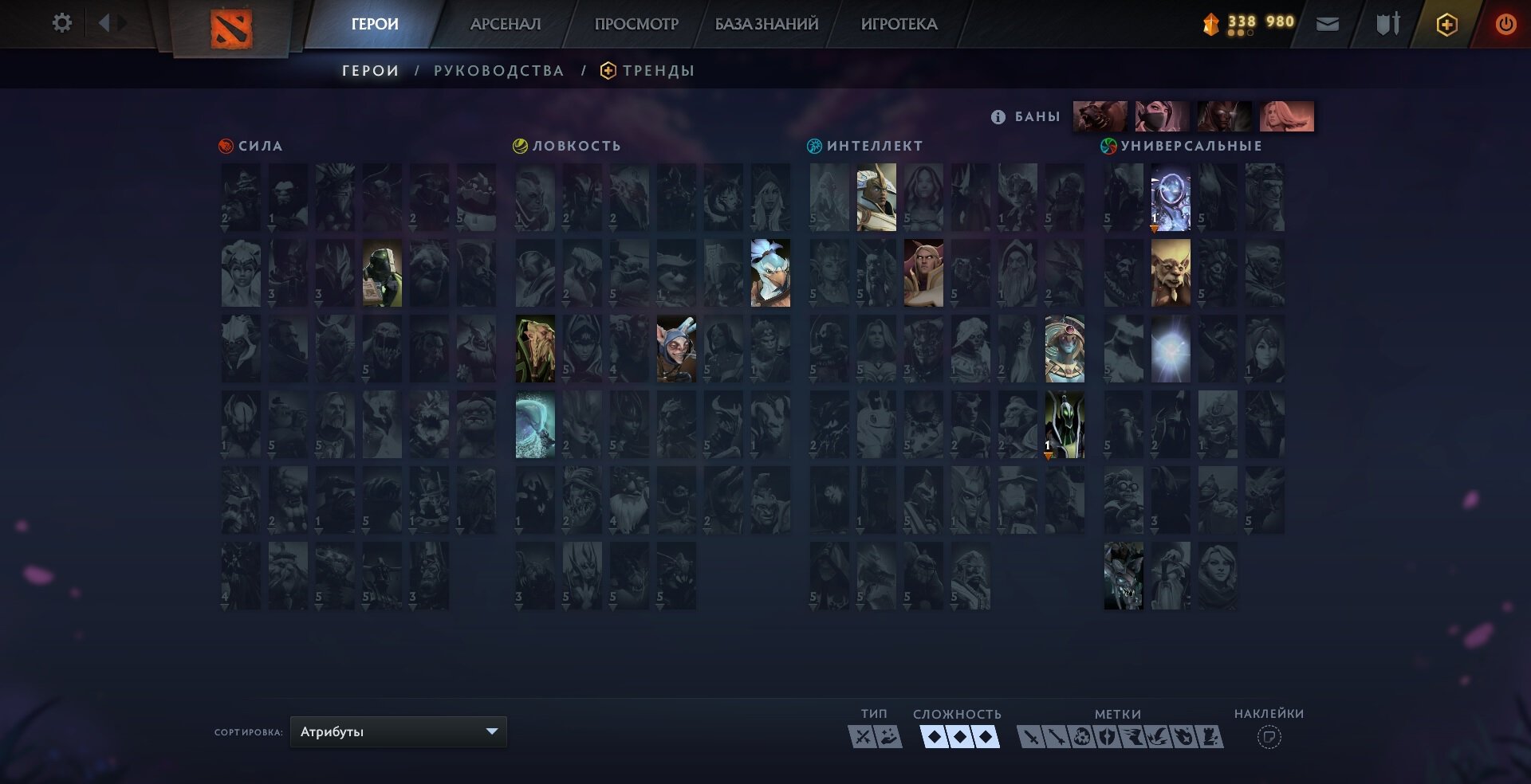 Для этого в главном меню нужно выбрать пункт «Герои», подпункт «Герои», и в фильтре снизу поставить 3 «ромбика» сложности. Сама Valve тоже считает, что в Доте есть 12 самых сложных героев.