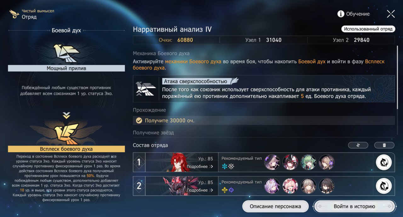 На этом этапе желательно взять хилера с клинсом или с периодическим исцелением, чтобы снимать с союзников дебаффы спектральной посланницы. Возьмите команды, в которых главный дамагер наносит физический или электрический тип урона, либо Раппу с усилением на пробитие. Если вы взяли Зарянку, отключите автобой (или автоиспользование сверхспособностей) и включайте ее ульту только когда ход вашей команды закончится, чтобы не потерять дополнительные действия.