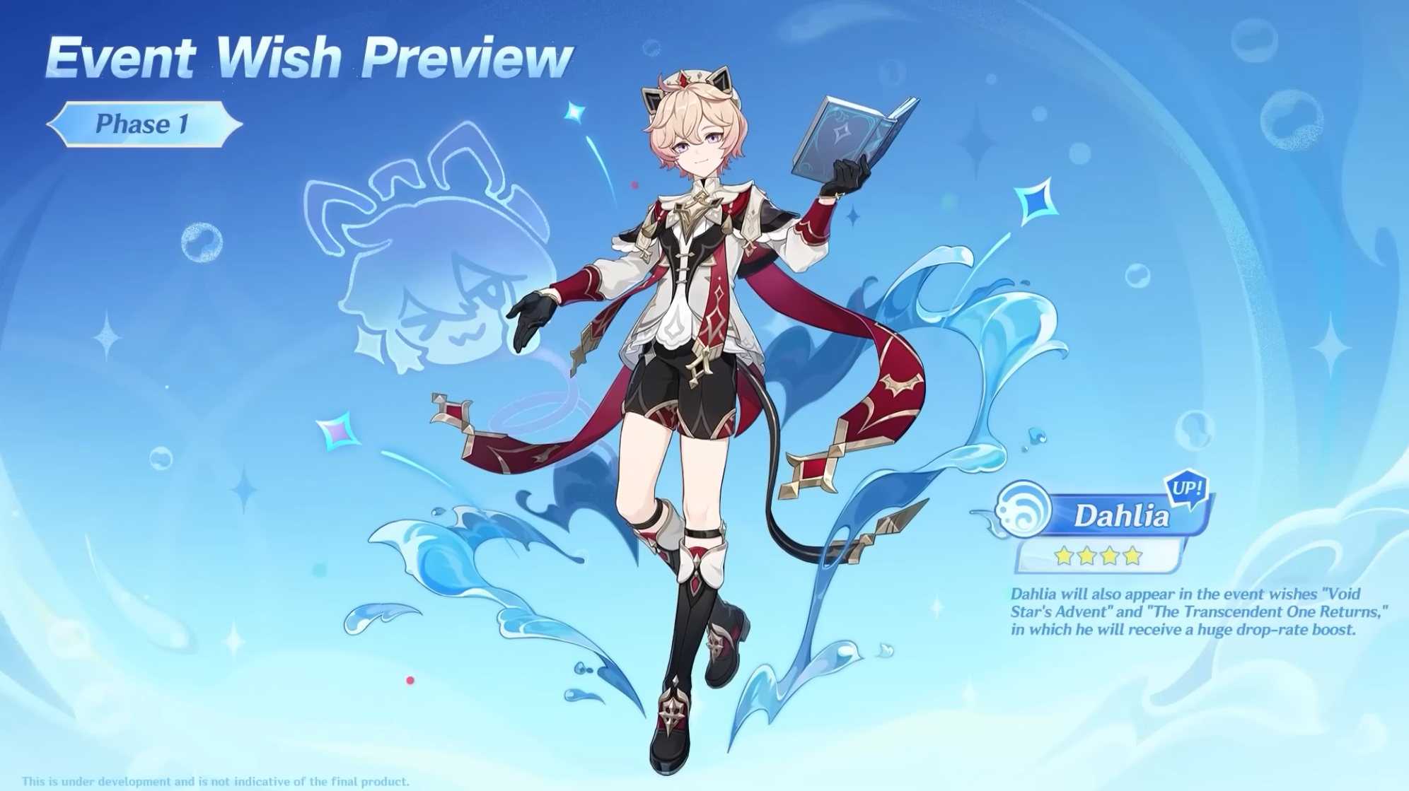 Далия – дьякон церкви Фавония, проповедник Анемо Архонта Барбатоса. Гидро персонаж поддержки с одноручным мечом. Создает Гидро щиты с помощью взрыва стихии, усиливает скорость атаки союзников и призывает Сакраментальный ливень, который наносит урон врагам или поднимает союзников в воздух. Увеличивает скорость передвижения отряда днем.