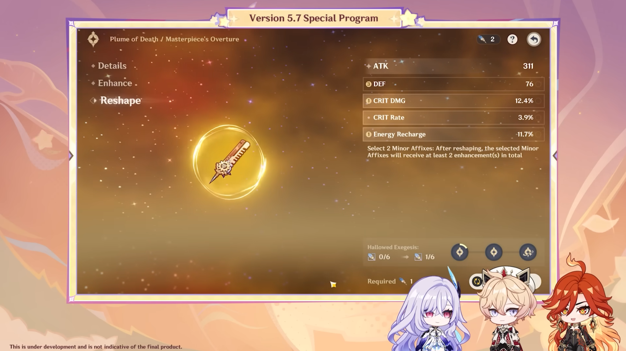 ● Использование слабой смолы: можно будет тратить в данжах (включая новый эндгейм режим) и артериях земли. Единица слабой смолы эквивалентна 60 единицам Первородной смолы, что позволит получать втрое больше наград.