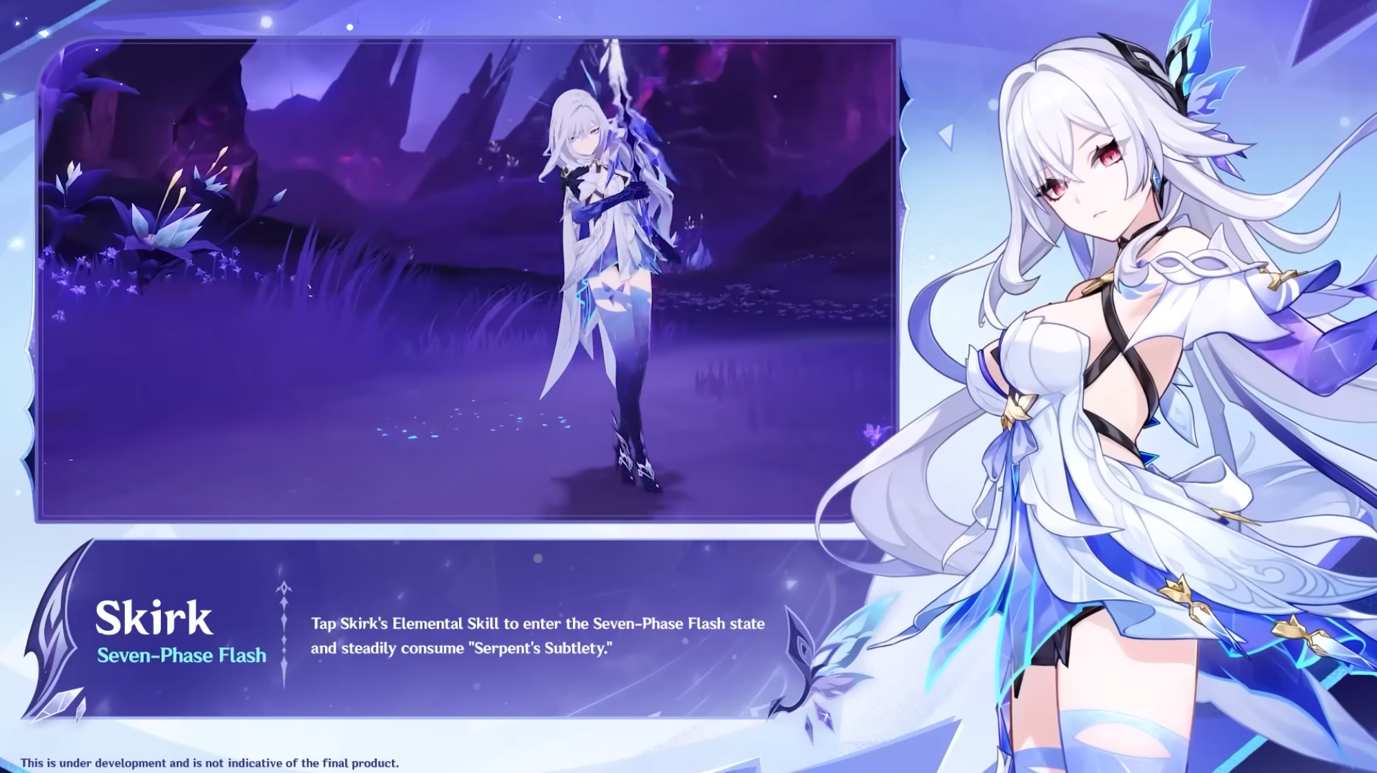 В Ли Юэ Путешественники встретят Скирк, играющую на гитаре в одиночестве. Ее таинственное прошлое раскроется через задание легенд, где игроки узнают о ее связи с Рыцарем скверны Сурталоги и Бездной. За выполнение задания можно получить Камни Истока и материалы для прокачки героини.