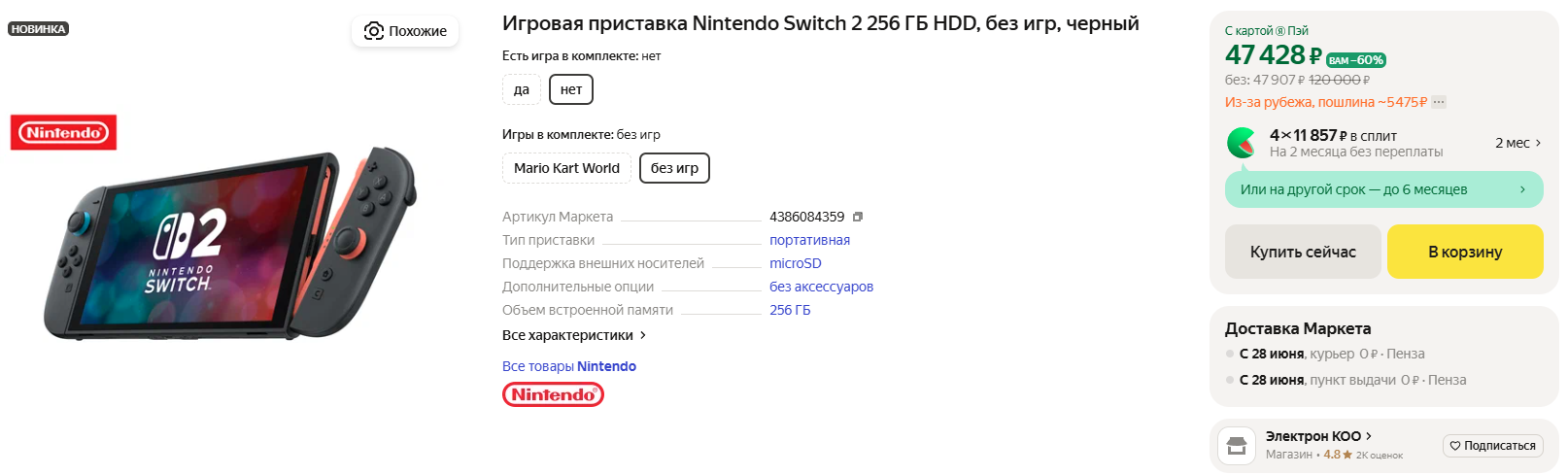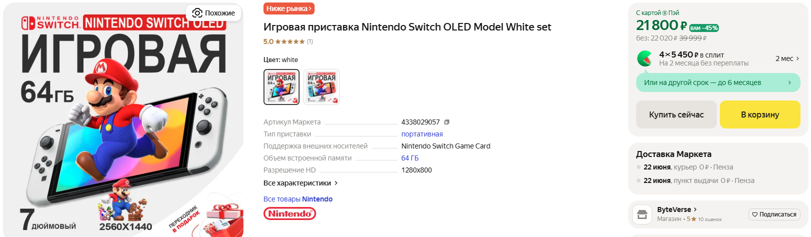 Новинку можно найти на маркетплейсах от 45 000 рублей, в то время как первый Switch упал в цене и начинается от 21 000 (а Lite и вовсе от 14 000!).