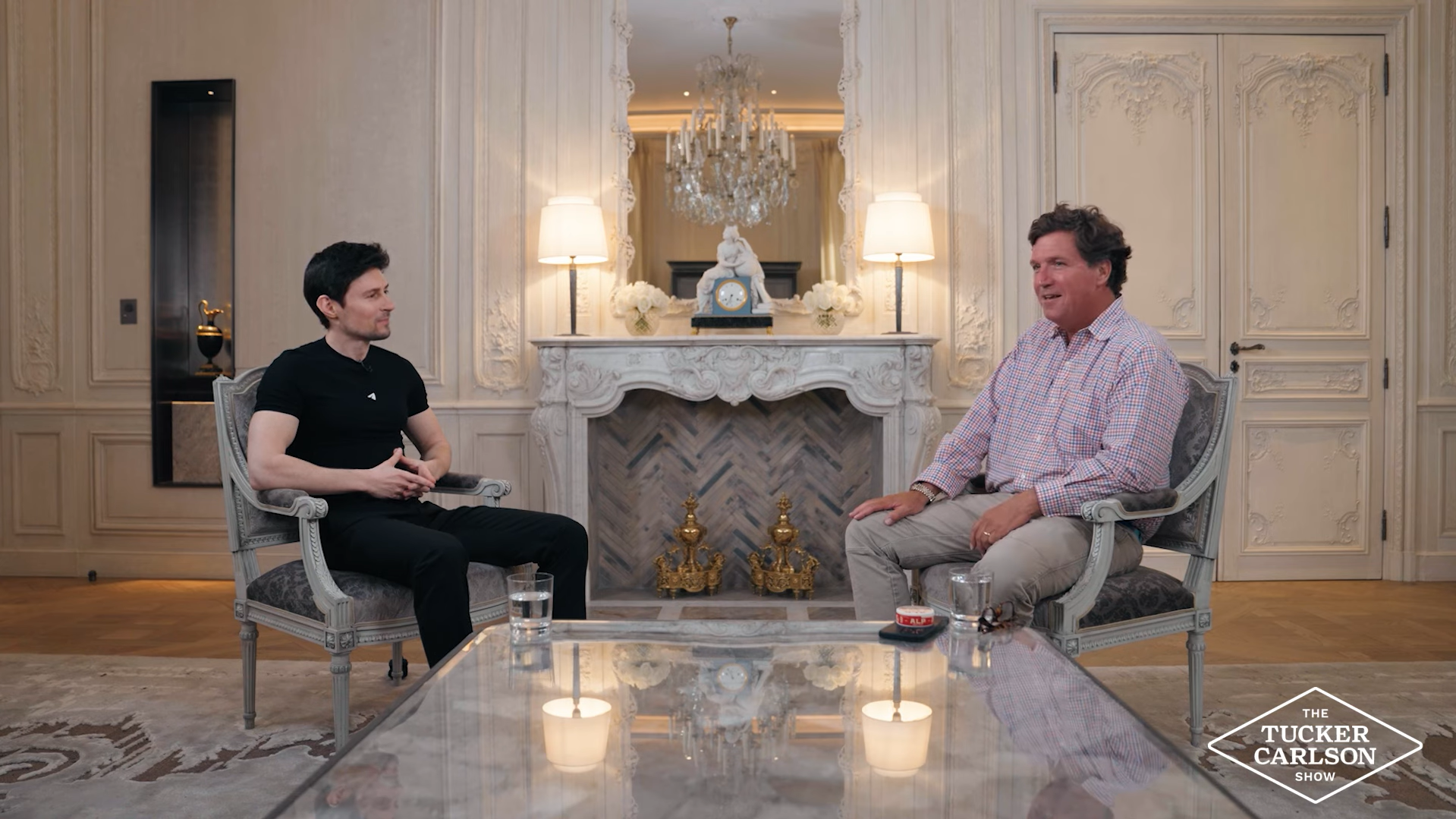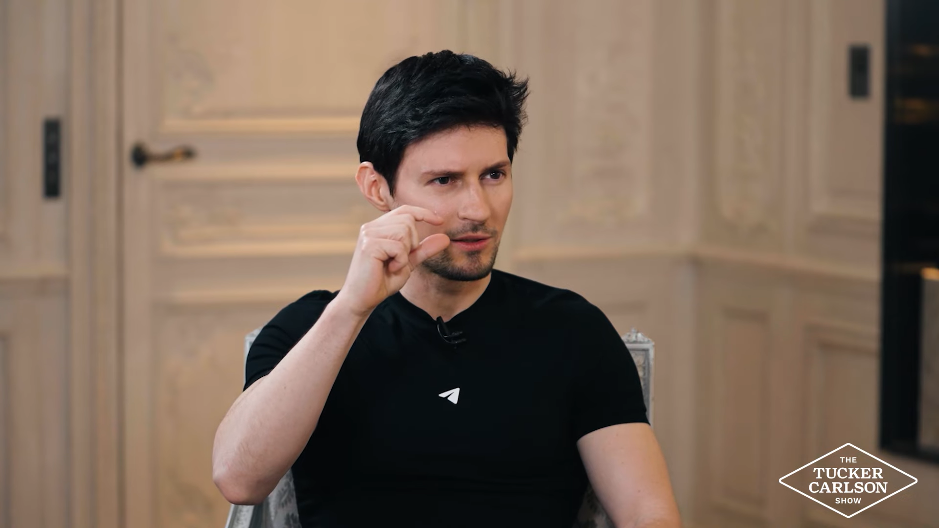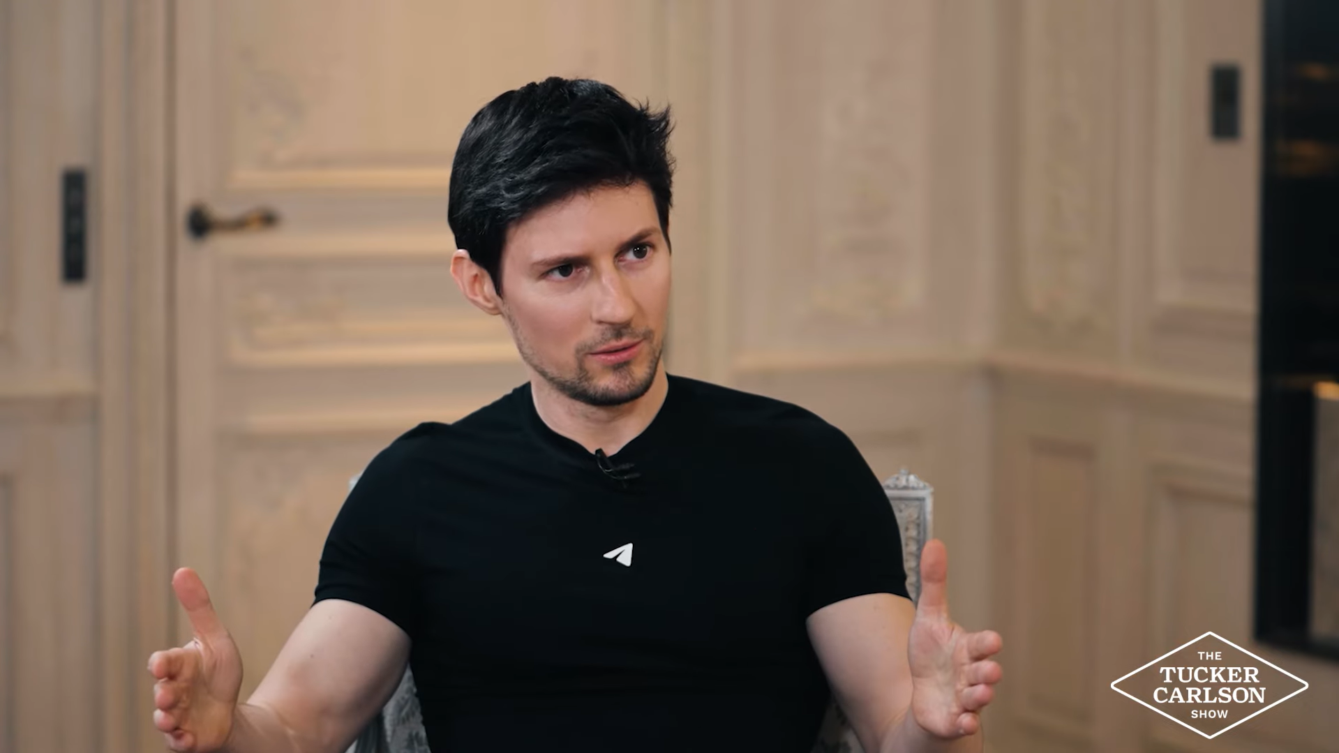 Здесь Такер Карлсон иронично поинтересовался, не успел ли основатель Телеграма вступить в банду за время заключения. Дуров с улыбкой ответил отрицательно.