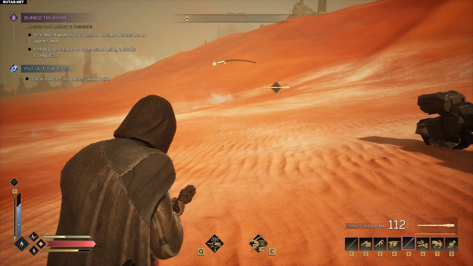 Чтобы сделать процесс быстрее и безопаснее, необходимо пройти «Второе испытание Акла» и собрать устройство под названием «Статический уплотнитель». Оно позволяет быстро фармить тонкий песок и специи, сжимая их в аккуратные кубы.