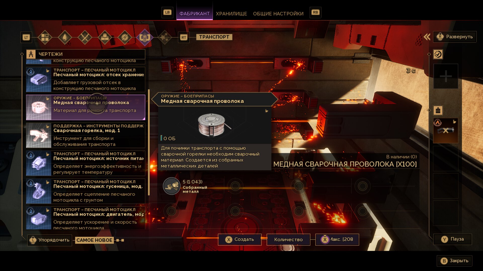 Чтобы построить транспорт, понадобится сварочный аппарат. Он же используется для ремонта. Достаньте аппарат, выберите режим ремонта и водите курсором по испорченным деталям.