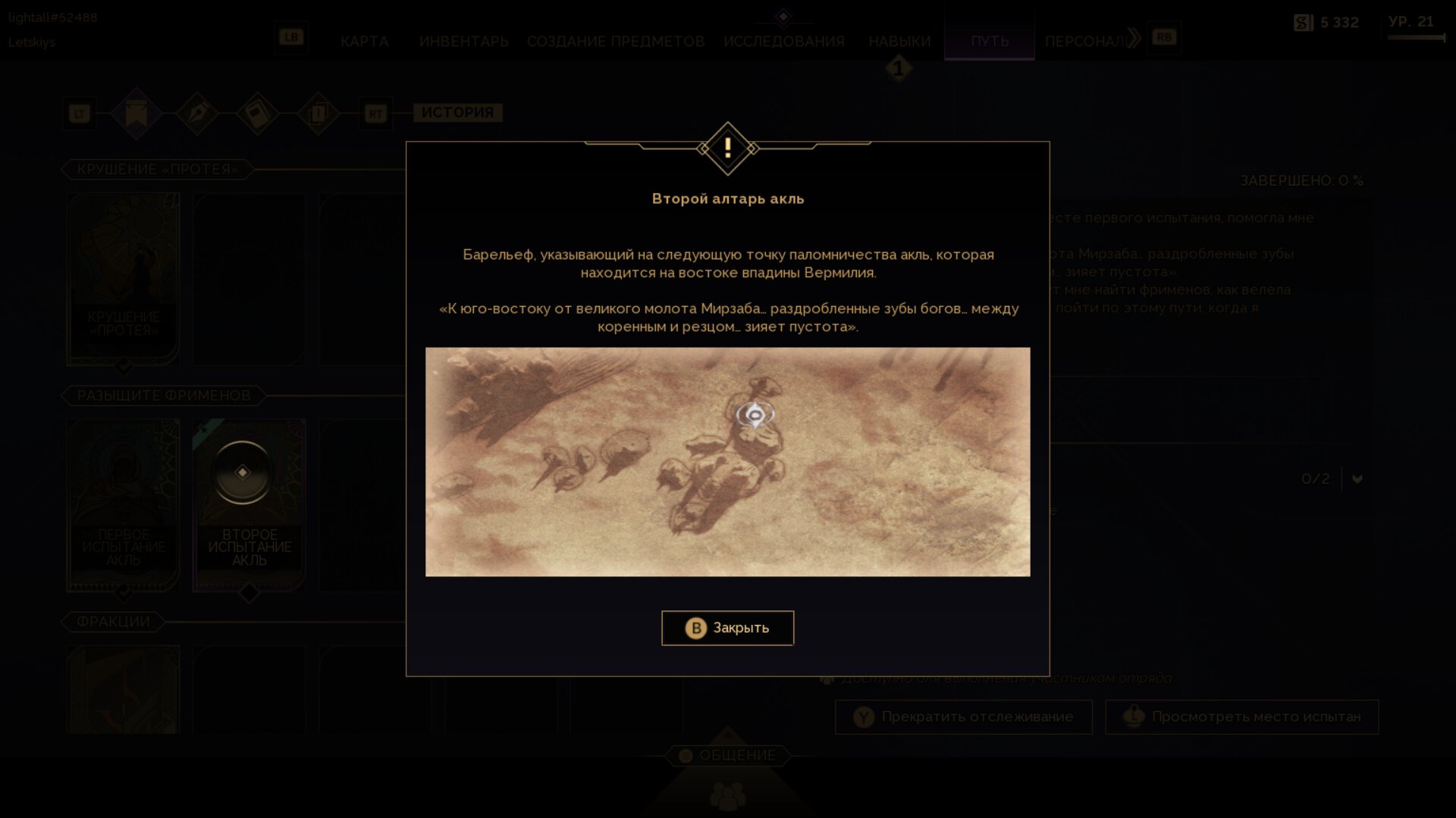 Сюжетные задания зачастую связаны с испытаниями. Они проходят в особых пещерах, которые не всегда отмечены на карте. Зато в разделе «Путь» в настройках есть описание задания. Там же вы найдете карту с местонахождением испытания.