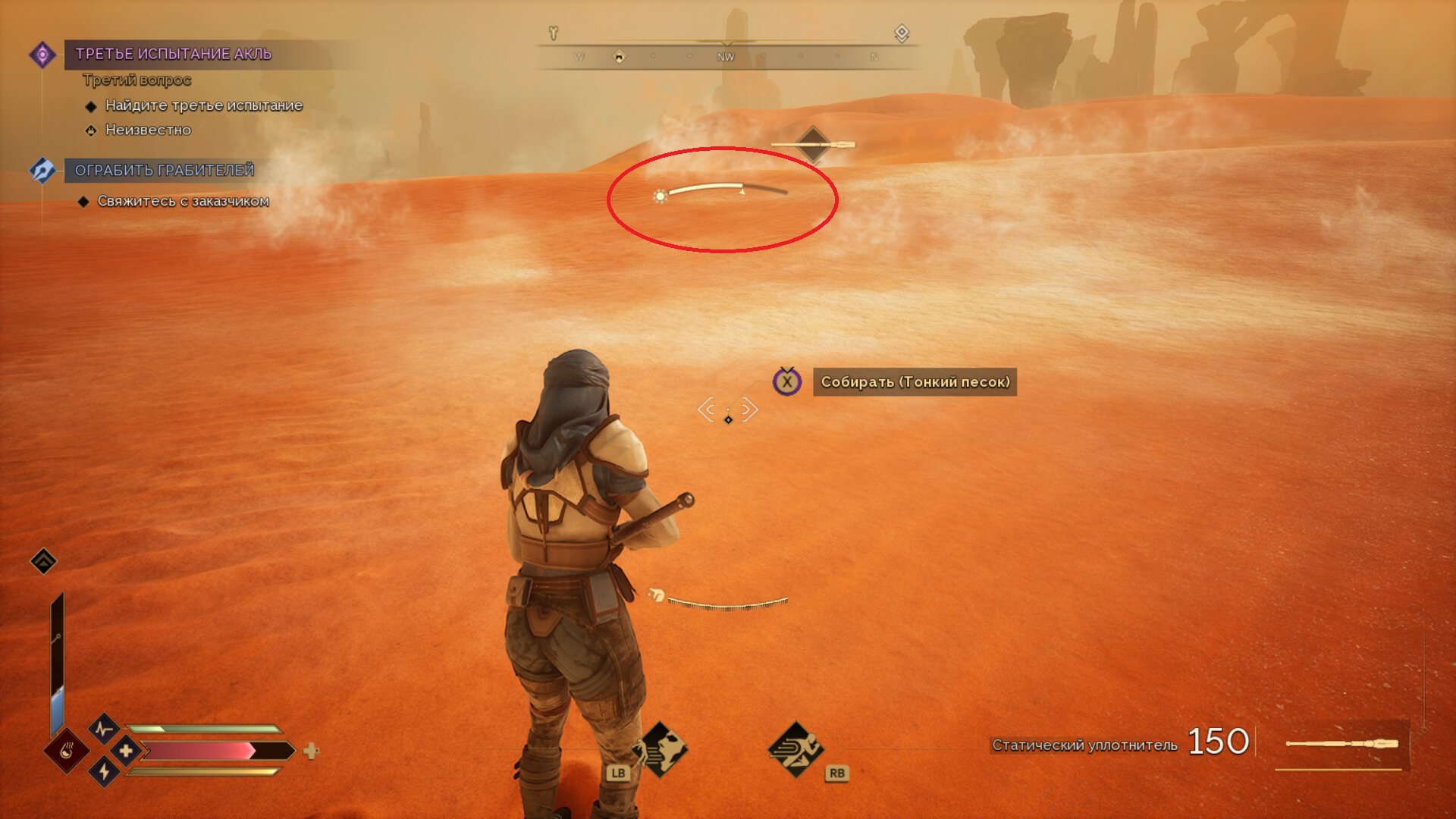 - Обходите барабанные пески, на которых каждый шаг отдается грохотом. На карте такие зоны отмечены красным кругом;
