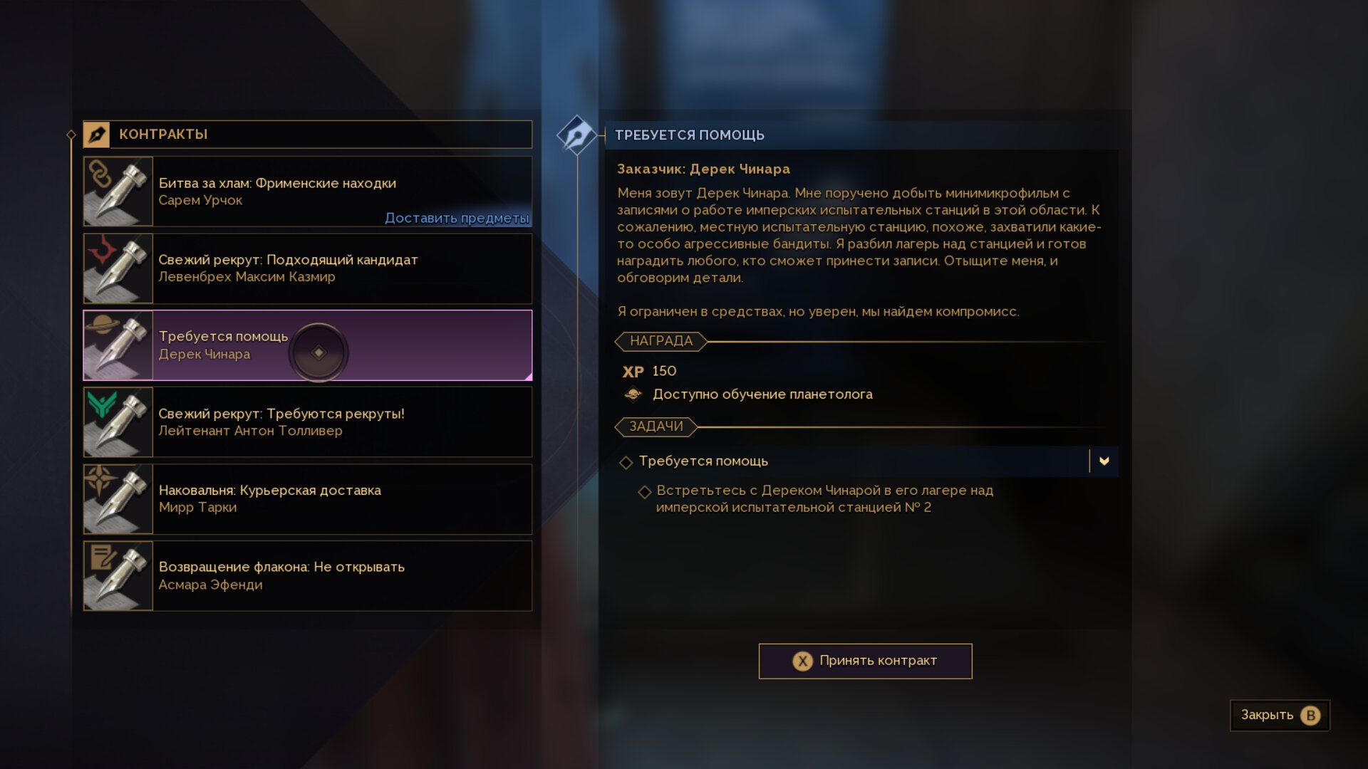 Часть контрактов действительно связаны с гриндом ресурсов и бесконечными убийствами. Но другие ведут в важные зоны, где много бесценного добра, или вообще к учителям. К примеру, планетолога вы найдете именно через контракт на первом торговом посту.