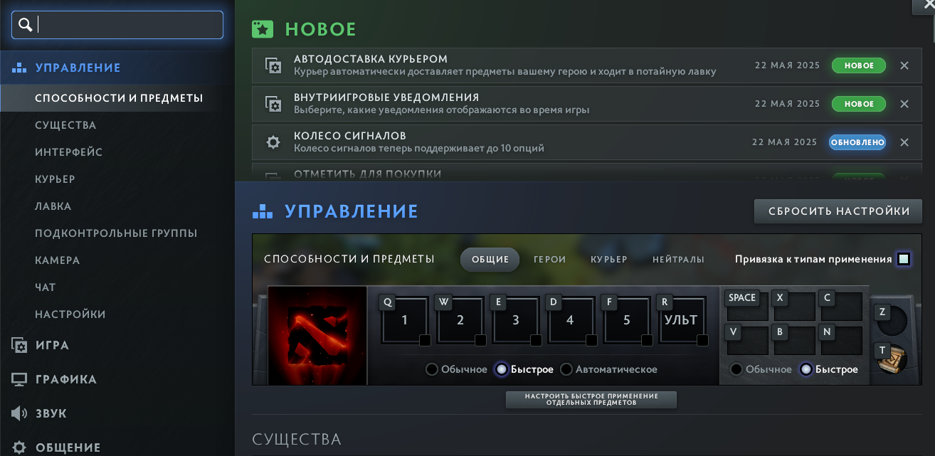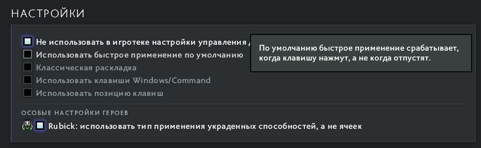 Как включить быстрое применение в Доте