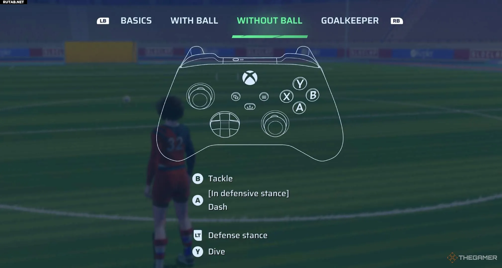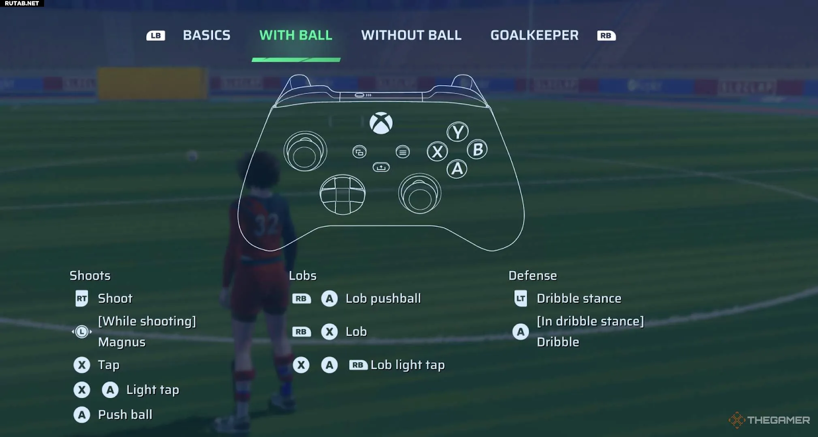 Когда у футболиста есть мяч, удар наносится кнопкой RT, а короткие передачи удобно делать через кнопку X. Подкат же вызывается кнопкой A, а стойка для дриблинга активируется удерживанием LT, что позволяет точно контролировать мяч и обводить защитников.