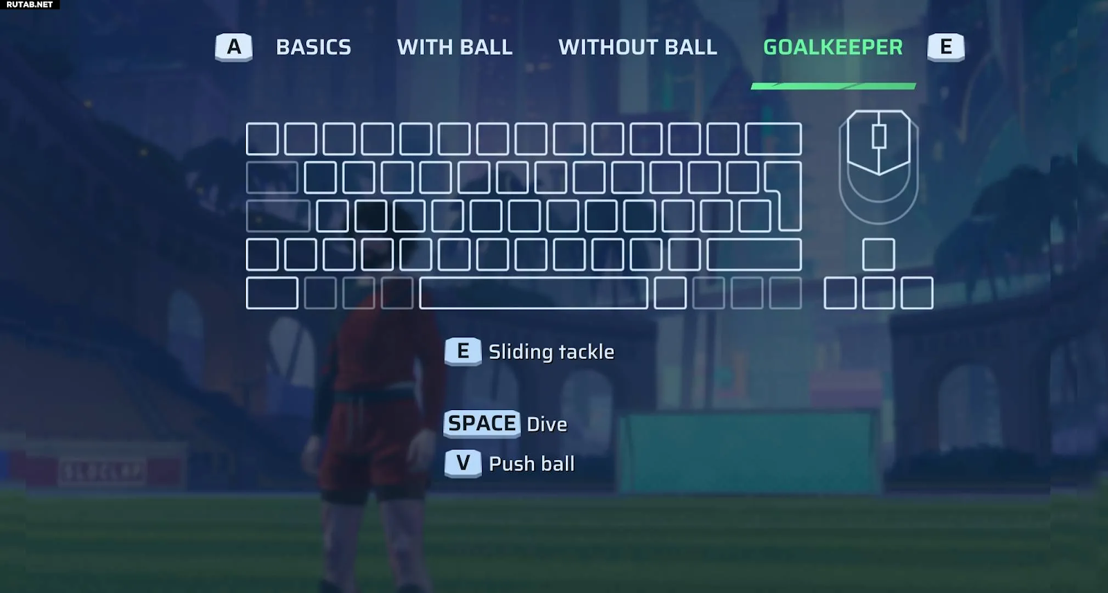 Для вратаря предусмотрены отдельные команды: подкат с помощью E, прыжок с пробелом и выбивание мяча через клавишу V — все это позволяет максимально эффективно защищать ворота.