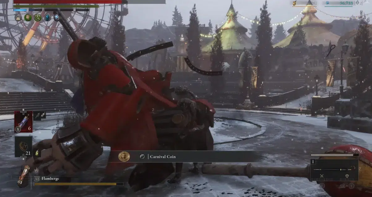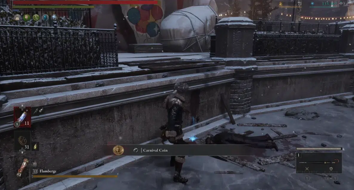 Вернувшись в район с Мастером парада и двинувшись к колесу обозрения, с левой стороны находится карусель, за которой охраняют монету несколько кукольных врагов. После ее получения монету можно использовать в другом киоске Цирка клоуна, где игрок столкнется с новым врагом и получит в награду «Автоадаптивный преобразователь Гильдии +2» и «Кристалл Эрго Вечности».