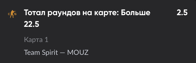 Ключевая особенность такого маркета ставок – не нужно угадывать победителя карты или матча. Достаточно предсказать лишь количество раундов.