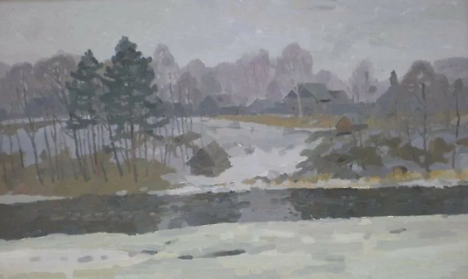 Евгений Павлович Телегин – мастер лирического пейзажа, чьи работы словно открывают окно в душу настоящей русской природы. Его полотна наполнены спокойствием и размеренностью, отражая неторопливый ритм жизни родной Владимирской земли. В центре внимания художника – природа во всей первозданной красоте: поля, леса, смена времен года. Телегин умел передать тончайшие нюансы природы, используя сдержанную цветовую гамму и тональные переходы, которые создавали особое настроение – будь то «холод осенней воды» или «тепло весеннего снега». Его пейзажи лишены излишней эмоциональной экспрессии, что делает их созерцательными и глубокими.