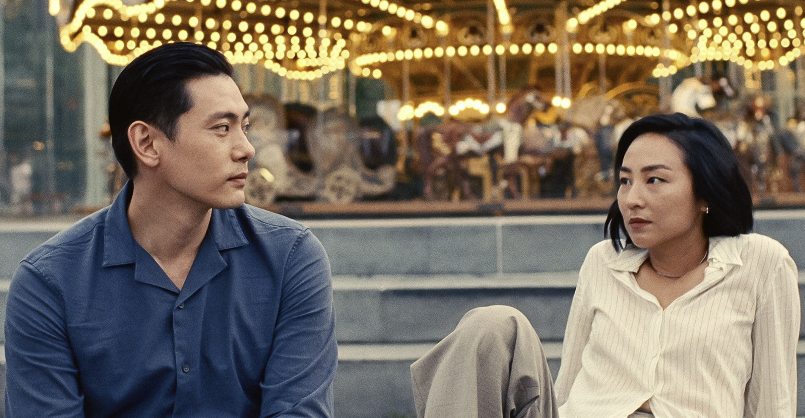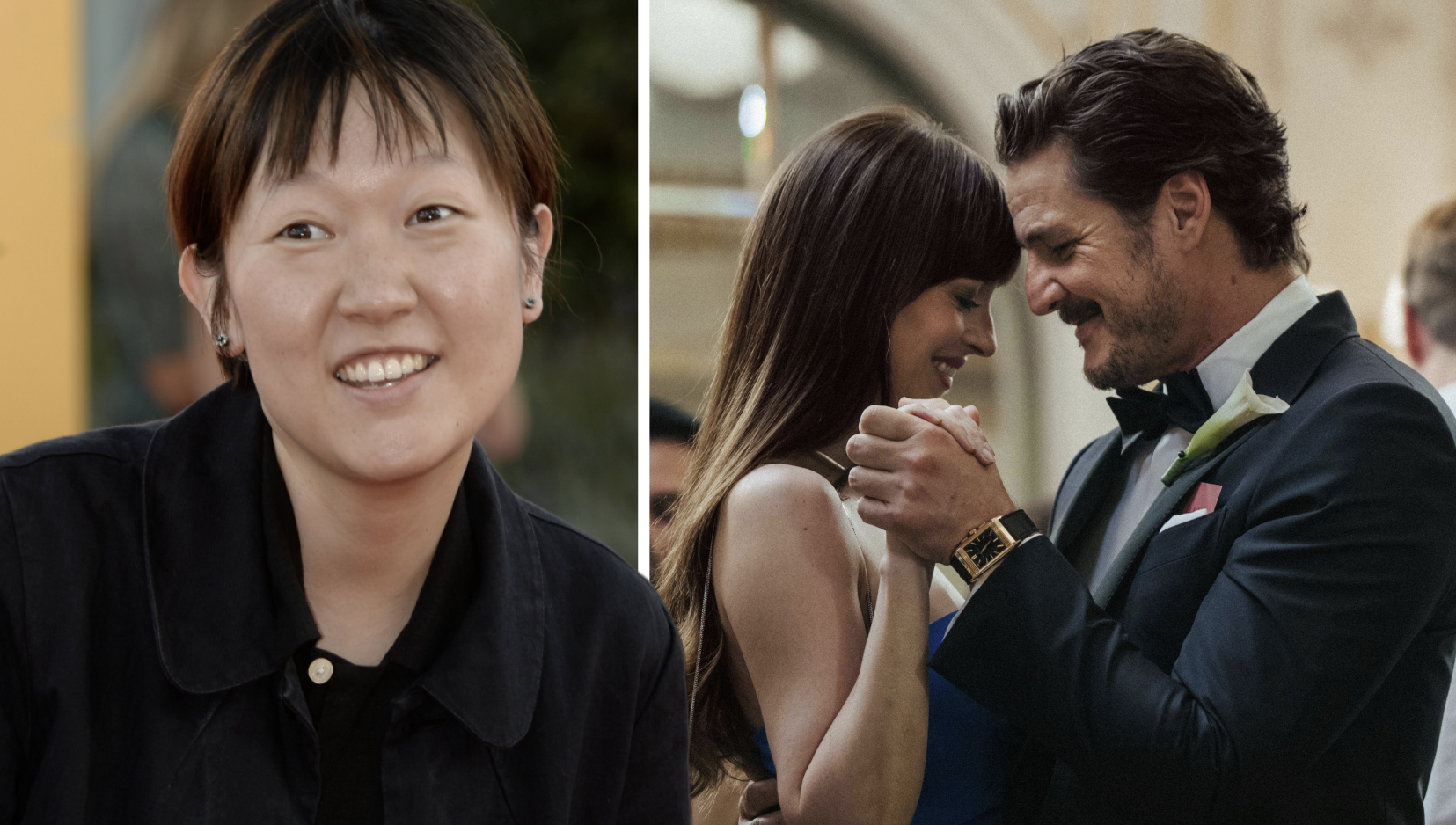 Слева – Селин Сон, справа – кадр из фильма «Материалистка»
