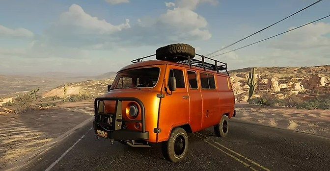 УАЗ – это автомобиль (на самом деле фургон), который можно найти на обочине дороги или у любых точек интереса в Drive Beyond Horizons. Он обладает полностью модульной конструкцией: все его части можно отсоединить и заменить, включая дополнительные слоты под турбину и клаксон.