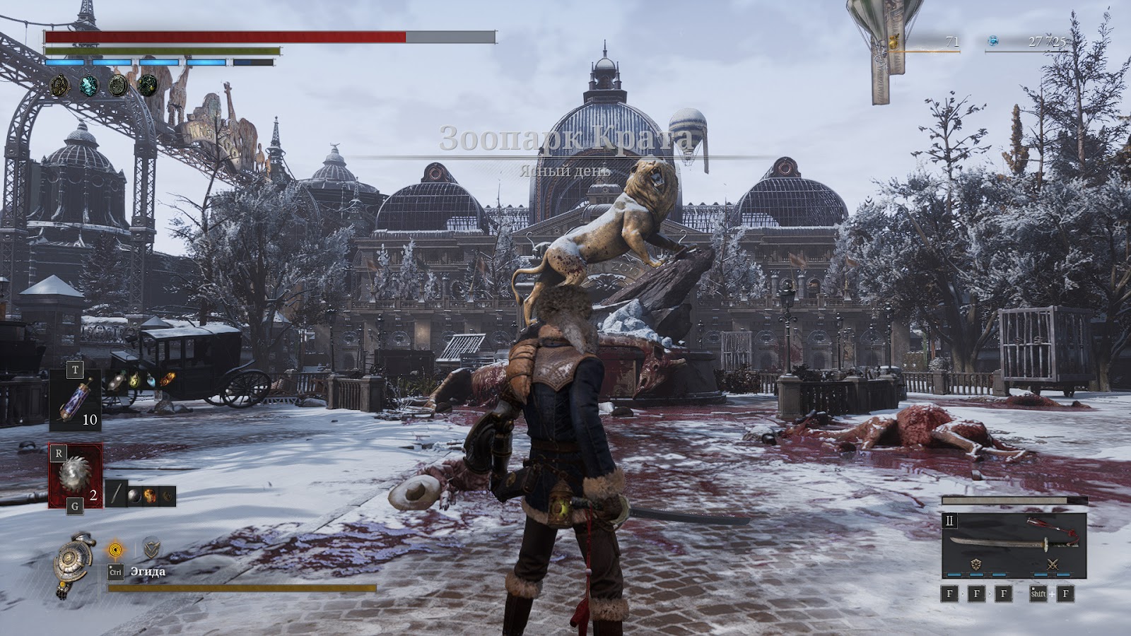 В зоопарке можно найти ценные предметы, включая зимнюю охотничью экипировку и загадочные газетные вырезки, раскрывающие историю локации. Особое испытание – битва со слоном, который при снижении здоровья вызывает дополнительные головы и накладывает обморожение, требуя использования огненного оружия.