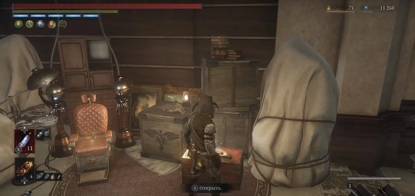 В центре локации – схватка с мини-боссом-алхимиком, медлительным, но мощным тяжеловесом, чьи удары оглушают, однако, оставляют его уязвимым после атаки. Среди ценных находок – редкие материалы и артефакты, которые помогут усилить героя и раскрыть тайны «Легиона». Особое внимание заслуживают бои с Арлекином, использующим огненные факелы и пламя, а также с Маркионой – боссом, управляющим опасной марионеткой с непредсказуемыми атаками.