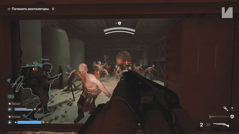 Второй столп, на котором держится FBC: Firebreak – шутерная часть, напоминающая «Серьезного Сэма». Хотите тактики? Использования укрытий? Применения классовых инструментов? Командной работы? Забудьте! Наш выбор – пятиться назад и стрелять в нескончаемые волны болванчиков, наблюдая, как тают одна за другой полоски здоровья.