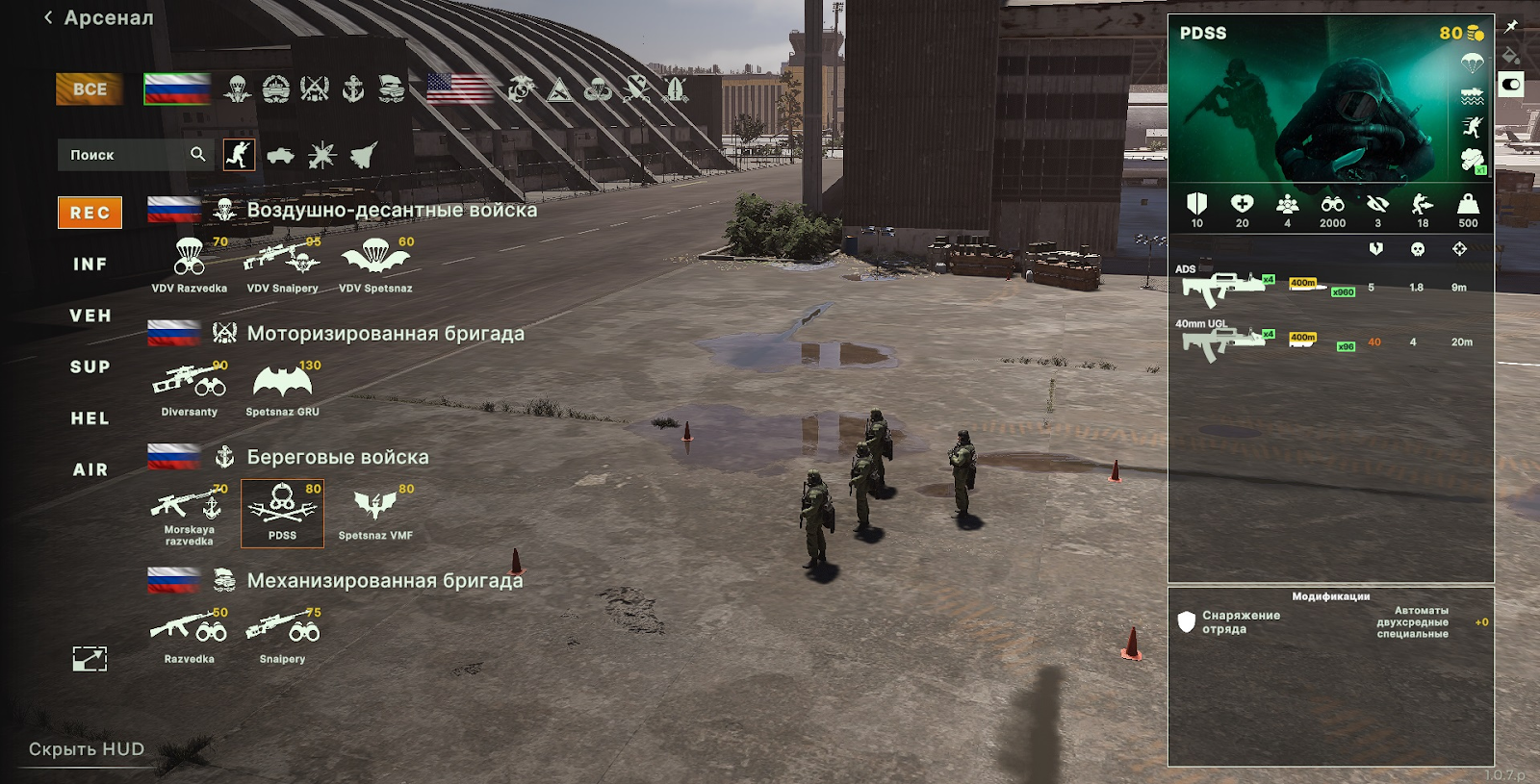 - ПДСС (Подводные диверсионные силы и средства): Эти ребята – короли скрытного передвижения. Они могут незаметно подобраться к врагу и устроить засаду, которая не оставит шансов ни пехоте, ни легкой технике. А еще они плавают и десантируются с воздуха! Добавь к этому броню и дымовые завесы для безопасного отхода. И хоть лазерной подсветки у них нет, их смертоносность в ближнем бою это компенсирует.